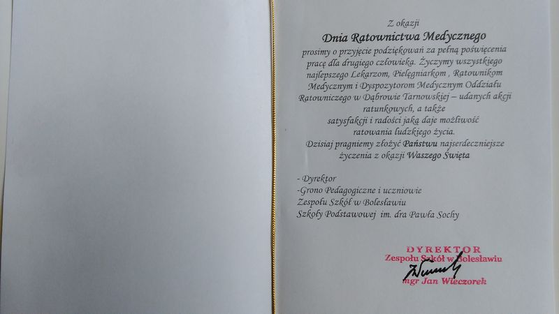 Na zakończenie pokazu ratownicy medyczni otrzymali podziękowania, a także życzenia z okazji Święta Państwowego Ratownictwa Medycznego. Za które bardzo dziękujemy.