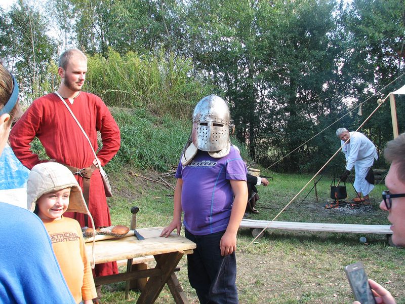 Podobnie jak kilka tygodni temu, podczas wielkiego turnieju rycerskiego z udziałem drużyn z całej Polski, i teraz impreza wzbudzała duże zainteresowanie mieszkańców regionu, zwłaszcza tych najmłodszych, którzy chętnie przyłączyli się do wyplatania sznura, poznając przy tym historię średniowiecza. Dopisali również, zaprzyjaźnieni z Pocztem Bagiennych z Wieżycy, rekonstruktorzy historyczni – na przedpolach powstającego grodu pojawiło się kilkadziesiąt osób w strojach historycznych. Tym razem przybył również – jak najbardziej współczesny – sędzia Robert Rojek z Biura Rekordów.