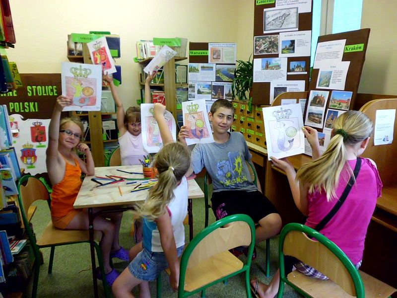 Przez kolejne trzy dni młodzi czytelnicy Filii Bibliotecznej w Gruszowie Wielkim uczestniczyli w zajęciach literacko- plastycznych, których celem było poznawanie legend dotyczących dawnych stolic Polski: Gniezna, Krakowa i Warszawy.