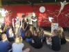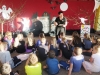 Spotkanie rozpoczęło się lekturą „Lokomotywy” Juliana Tuwima, taki bowiem zwyczaj niesie ze sobą coroczne święto czytania, w tym roku rozpoczynające się właśnie 3 czerwca i trwające do 10 czerwca, a przebiegające pod nazwą: XVI Ogólnopolski Tydzień Czytania Dzieciom. Wiersz czytały dzieci „wprowadzone w rytm” przez dyrektorkę biblioteki panią Jadwigę Kusior. Dalsza część spotkania to już wielkie poszukiwania książki, która miała być czytanką wieczoru, jednak w dziwnych okolicznościach zaginęła… Mowa o „Tajemnicy biblioteki” Martina Widmarka i Helleny Willis, z cyklu: „Biuro detektywistyczne Lassego i Mai”. Wielkie tropienie książki wypełniły wspólne odnajdywanie tropów zgodnie ze wskazówkami tajemniczego sprawcy zamieszania z brakiem bestsellerowego opowiadania. Były zabawy ruchowe, literackie zagadki, zagmatwane labirynty i plastyczne rozrywki, a wszystko to, perfekcyjnie wykonane przez dzieci, doprowadziło do miejsca, gdzie znajdowała się zaginiona książka. I jak się okazało na dzieci czekał także gość, sprawca „afery książkowej”, w którego rolę wcielił się zaprzyjaźniony z biblioteką użytkownik pan Michał Przyłódzki. Za psikusa, jaki sprawił dzieciom, otrzymał jednak wielkie brawa, gdyż zabawa śladami dziecięcych detektywów bardzo im się spodobała. W nagrodę tropiciele posłuchali fragmentów poszukiwanej książki, a także obejrzeli film pt. „Biuro detektywistyczne Lassego i Mai: Stella Nostra” (reż. P. Klange i W. Soderlund), którego publiczną emisję mogliśmy zorganizować dzięki udziałowi w akcji „Noc Bibliotek”. Dzieci opuściły bibliotekę z naklejkami-exlibrisami oraz zakładkami od organizatora, promującymi to wyjątkowe, czytelnicze wydarzenie.