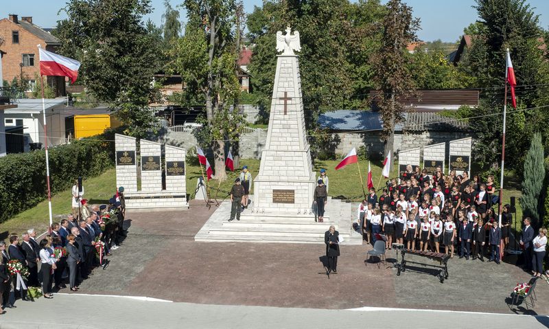 (…) W naszym powiecie 12 września niemieccy żołnierze ostrzelali i spalili będących w Szkole Podstawowej; w liczbie około 70 osób. Na miejsce mordu przyprowadzili Żydów ze Szczucina, którzy także stracili życie. W szkole był punkt zborny i przebywali tam m.in. jeńcy wojenni. (…) Niech to będzie ważna lekcja historii, z której wszyscy wyciągniemy wnioski – zaapelował starosta Lesław Wieczorek.