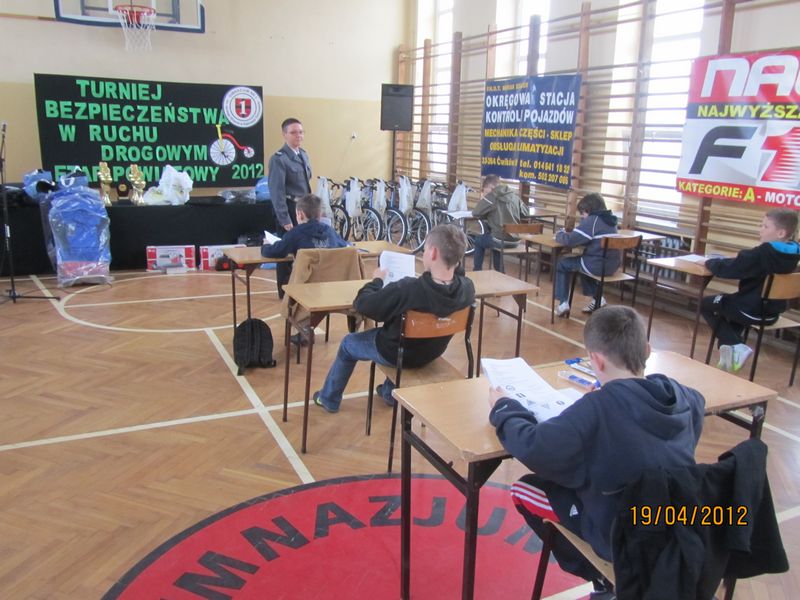 Wzorem lat ubiegłych policjanci z Wydziału Ruchu Drogowego Komendy Powiatowej Policji w Dąbrowie Tarnowskiej w 19.04.2012 r. w Gimnazjum Nr 1 im. Jerzego Brauna w Dąbrowie Tarnowskiej przeprowadzili kolejną edycję Eliminacji Powiatowych Ogólnopolskiego Turnieju Bezpieczeństwa w Ruchu Drogowym dla młodzieży szkolnej.