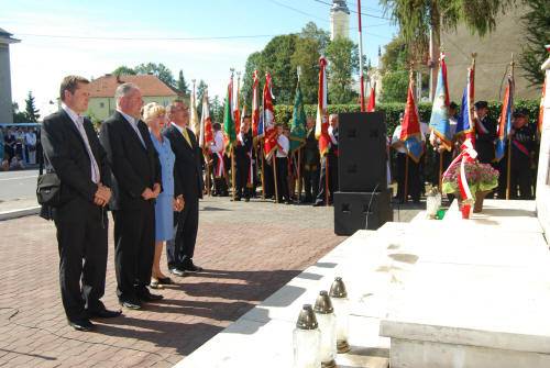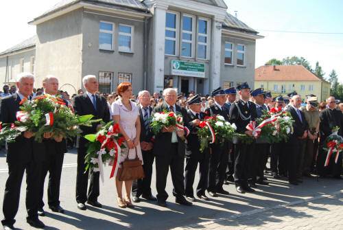 Odgłos syreny strażackiej rozpoczął dalszą część obchodów. Po odegraniu Hymnu państwowego, Burmistrz Miasta i Gminy Szczucin Jan Sipior, powitał wszystkich przybyłych na uroczystość. Przemówienia okolicznościowe wygłosili: Tadeusz Kwiatkowski – Starosta Powiatu Dąbrowskiego, Stanisław Sorys – Wicemarszałek Województwa Małopolskiego, Andrzej Sztorc – Poseł RP, dr Andrzej Kosiniak- Kamysz– Przewodniczący Rady Kasy Rolniczego Ubezpieczenia Społecznego i Zenona Teresa Mikuna – córka uratowanego z podpalonej przez Niemców Szkoły Podstawowej w Szczucinie.