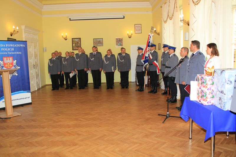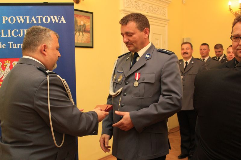Medale i odznaczenia otrzymali w tym roku policjanci: st. asp. Radosław Pyrcz (za długoletnią służbę), podinsp. Marek Węgiel, asp. sztab. Jacek Motyka, asp. sztab. Czesław Kalita (odznaka zasłużony policjant) oraz pracownik służby cywilnej Krzysztof Bednarz (za długoletnią służbę). Ponadto mając na uwadze współpracę z Policją w zakresie troski o bezpieczeństwo mieszkańców naszego powiatu srebrny medal za zasługi dla Policji otrzymali Andrzej Lewandowski Prokurator Prokuratury Okręgowej w Tarnowie, który wcześniej przez wiele lat kierował pracą Prokuratury Rejonowej w Dąbrowie Tarnowskiej oraz Jan Sipior Burmistrz Miasta i Gminy Szczucin.