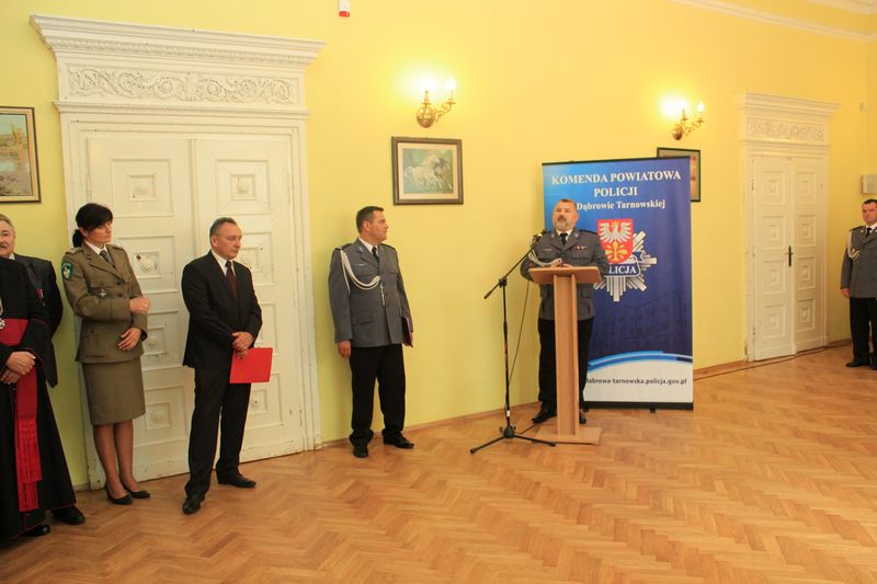 Podczas uroczystości Robert Pantera Wicestarosta Dąbrowski w imieniu samorządu Powiatu Dąbrowskiego pogratulował wszystkim odznaczonym i awansowanym funkcjonariuszom Policji, a także złożył na ręce mł. insp. Andrzeja Kupca Komendanta Powiatowego Policji w Dąbrowie Tarnowskiej oraz podinsp. Macieja Czosnyki Komendanta Komisariatu Policji w Szczucinie, życzenia i gratulacje dla funkcjonariuszy Policji pracujących w Powiecie Dąbrowskim.
