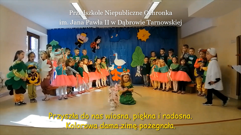 Zachęcamy do wysłuchania i obejrzenia wiosennych popisów dzieci z Przedszkola Niepublicznego Ochronka im. św. Jana Pawła II, Przedszkola nr 1 i Przedszkola nr 2 z naszego miasta.