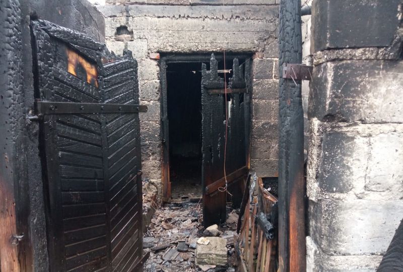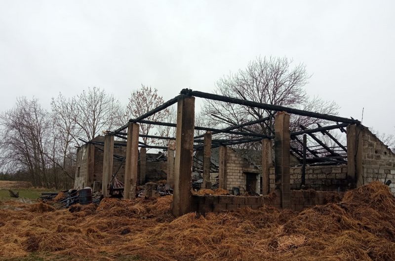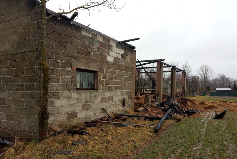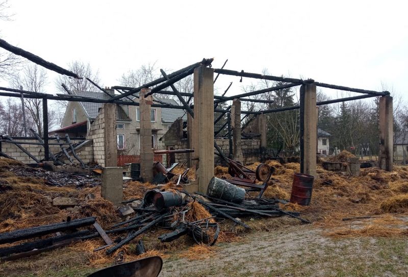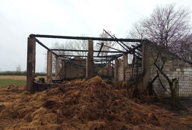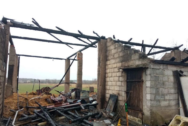 Po przybyciu na miejsce zdarzenia budynek stodoły w całości był objęty pożarem.