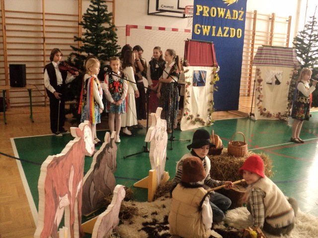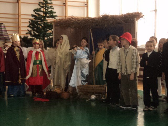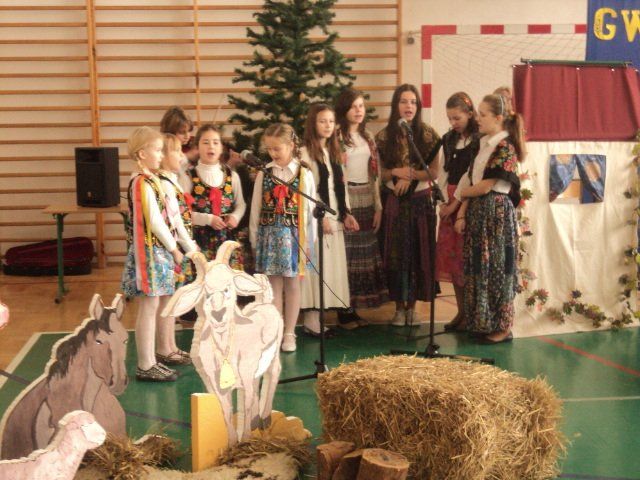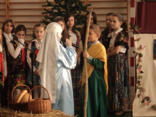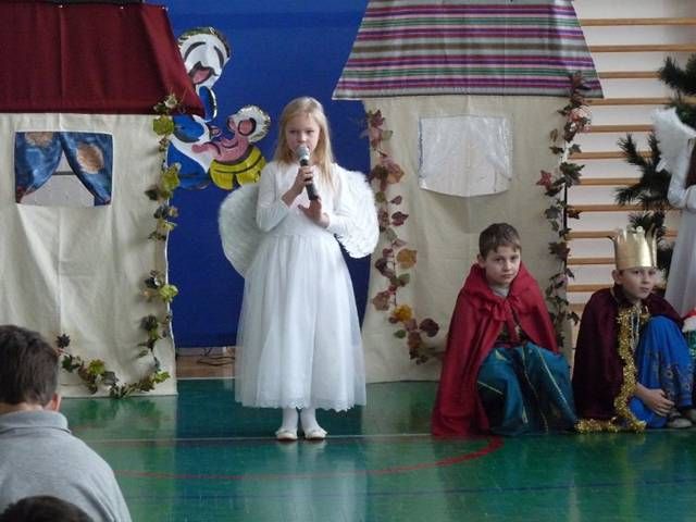 Jasełka wystawiane były dla dyrekcji szkoły, nauczycieli oraz uczniów jak również zaproszonych gości: pana burmistrza, emerytów dawniej pracujących w naszej szkole, a także rodziców. Publiczność mogła przeżyć historię Marii i Józefa szukających schronienia, którzy po bezowocnych poszukiwaniach zdecydowali się przenocować w stajni. Jednak to do nich i małego Jezuska przybyli tak honorowi goście jak trzej mędrcy, aniołowie, pasterz i dzieci z otwartymi sercami, aby złożyć dzieciątku pokłon.