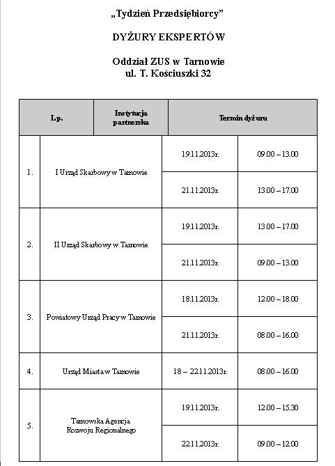Przez cały tydzień w Oddziale ZUS w Tarnowie na specjalnie przygotowanych stanowiskach na przedsiębiorców będą czekali eksperci ZUS oraz Urzędu Miasta.