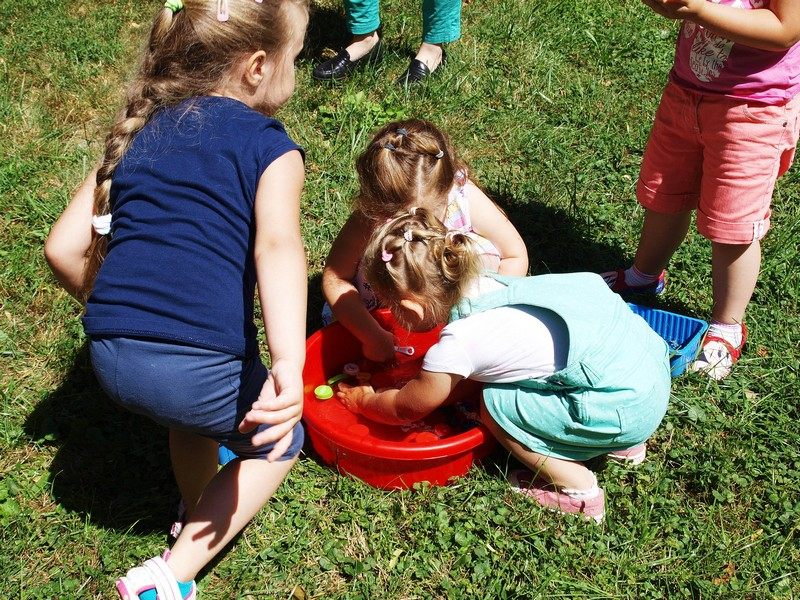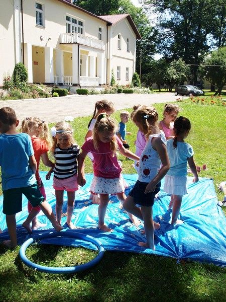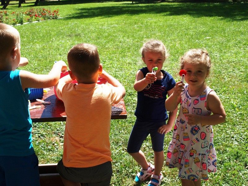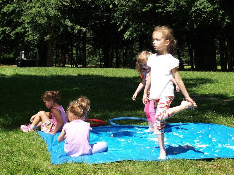 W dalszej części brały udział w zabawach sensoryczno-ruchowych, a wycieczkę zakończyły poczęstunkiem – pieczoną kiełbaską. Dodatkową atrakcją były zrobione z balonów berła dla dziewczynek i miecze dla chłopców.