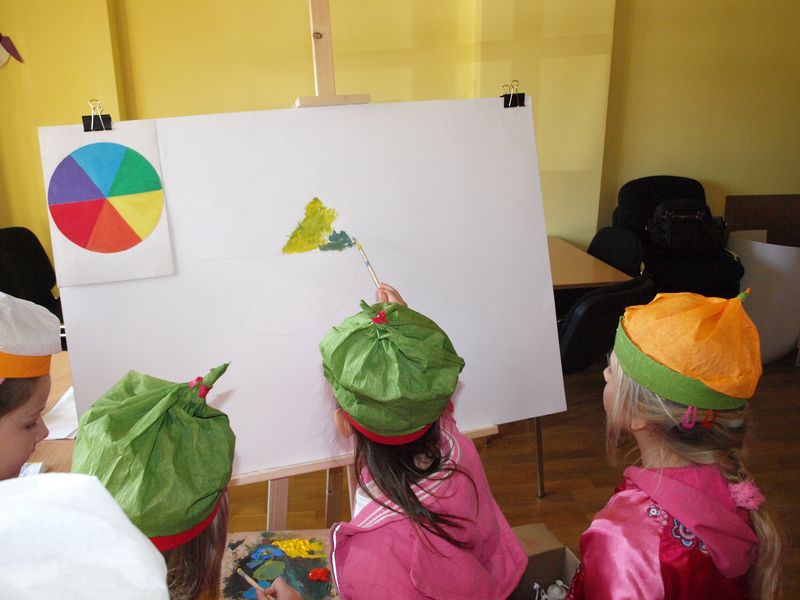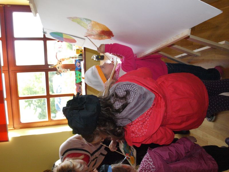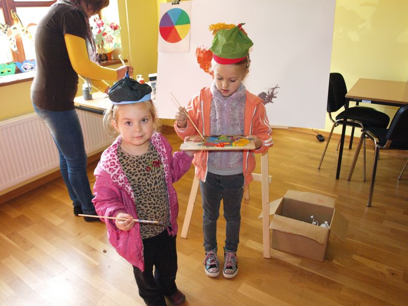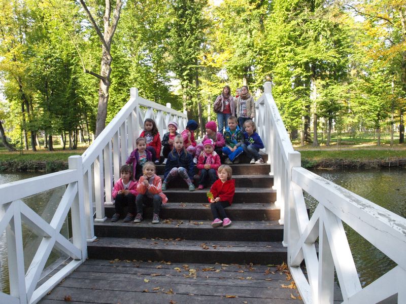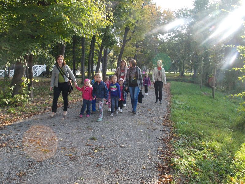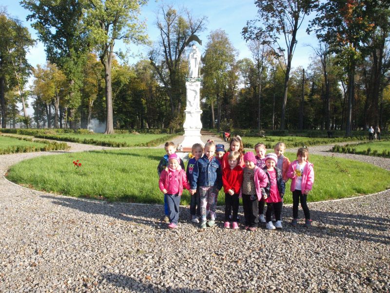 Przedszkolaki uczestniczyły w zajęciach plastycznych oraz spacerowały po parku, karmiły ryby w stawie parkowym i zwiedziły dwór Konopków.