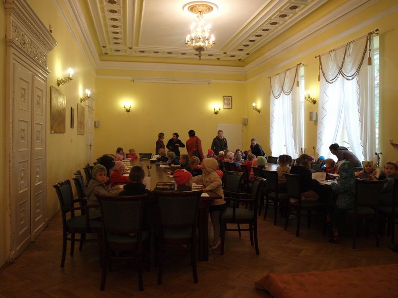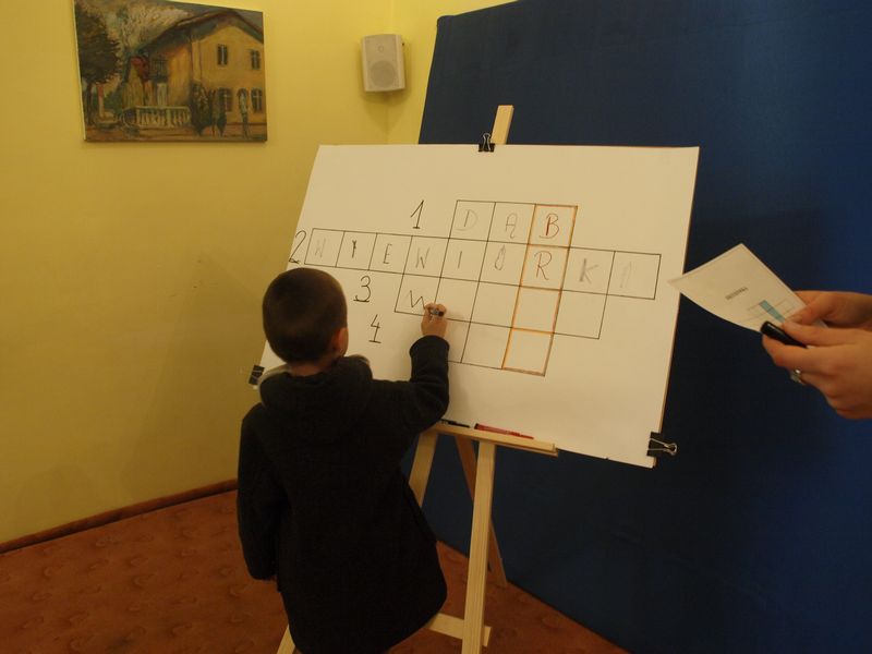 Następnie dzieci przybyły do Dworku Konopków zwiedziły go i przeszły do sali, gdzie były przygotowane dla nich kolorowanki, a także krzyżówka.