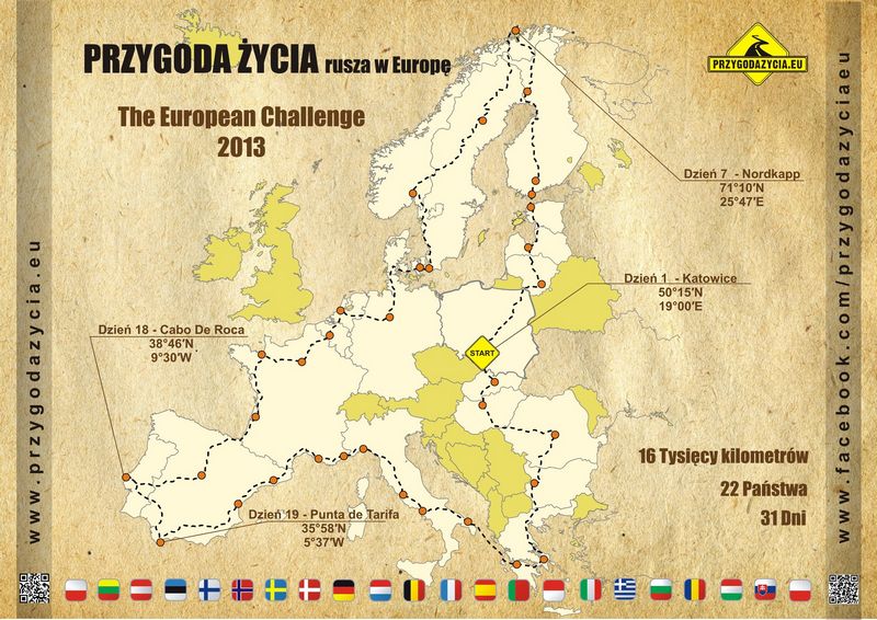 Na czym więc polega pomysł? Chcemy okrążyć Europę, odwiedzając jej najdalej wysunięte krańce na północ, zachód i południe. Gdzie tu wyzwanie? 22 kraje, ok. 16 tysięcy km w zaledwie jeden miesiąc…