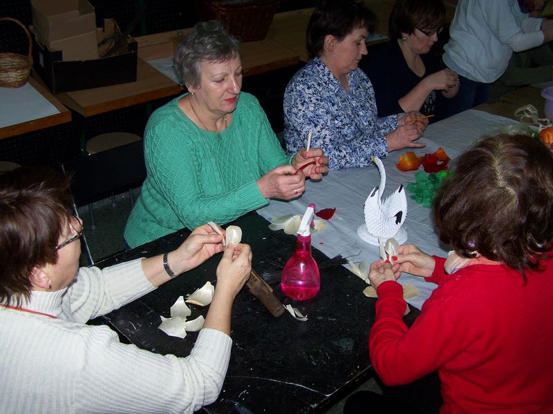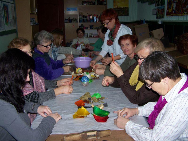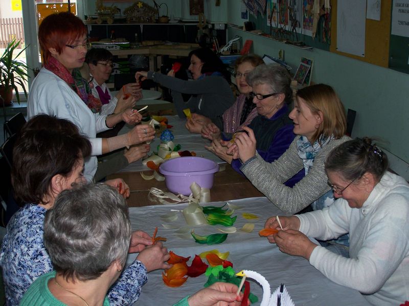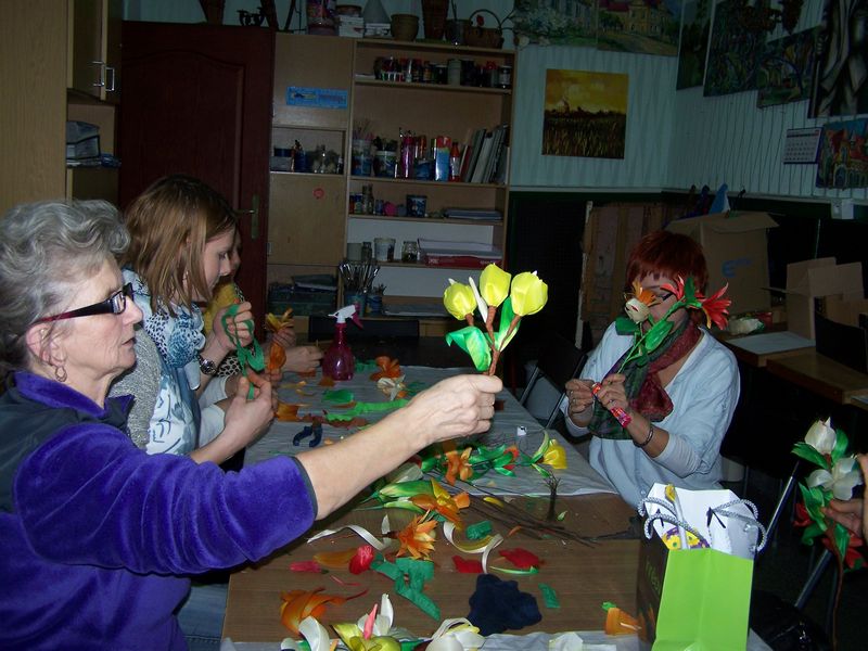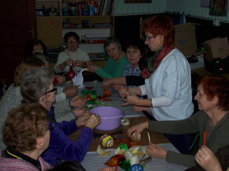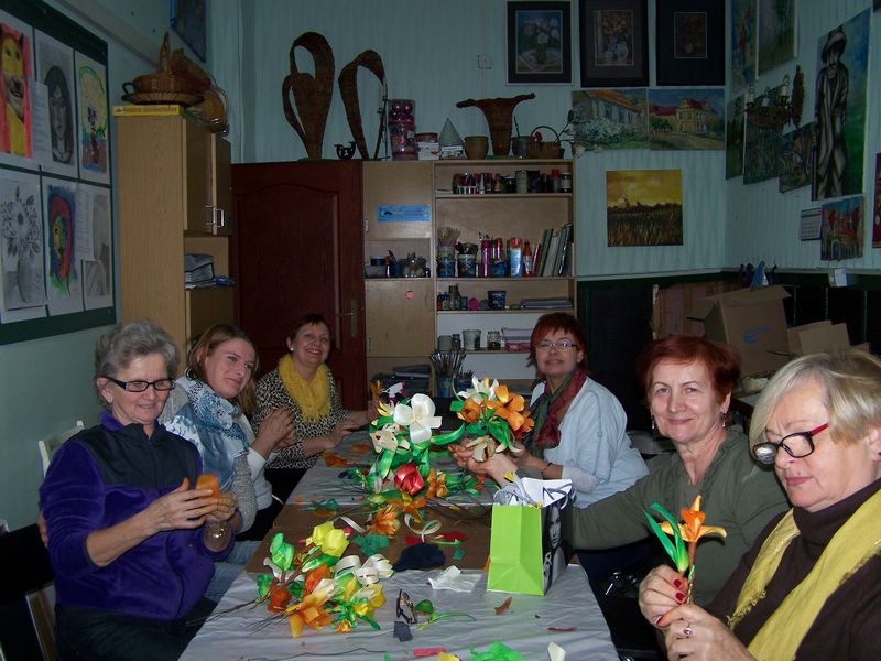 Staraniem Dąbrowskiego Domu Kultury udało się zorganizować interesujące warsztaty rękodzielnicze dla studentek Uniwersytetu Trzeciego Wieku. 12 pań uczących się techniki wyplatania kwiatów z łyka osikowego było bardzo zadowolonych z efektów swojej twórczej pracy.