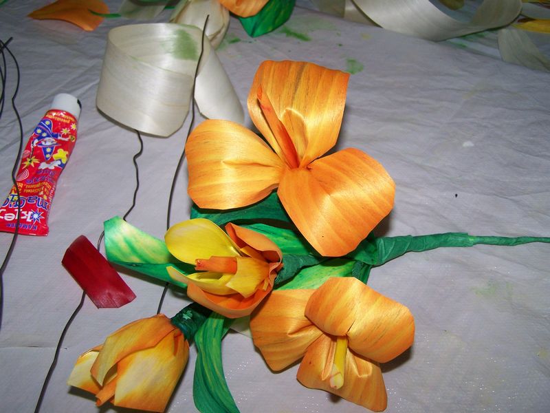 Wykorzystano materiały: łyko, osikowe, bibułę, druty, klej. Zajęcia rozpoczęła projekcja filmu szkoleniowego na temat tej ciekawej tradycji ludowej.