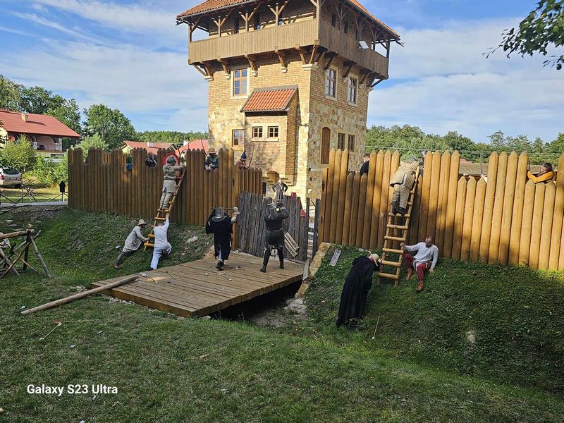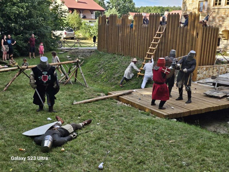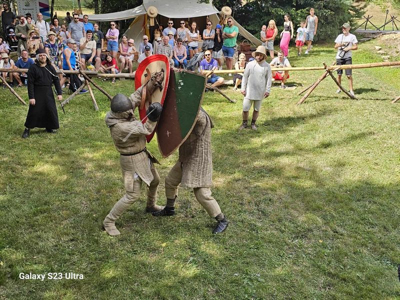 Między konkurencjami bojowymi i sprawnościowymi występował zespół „Żmij” grający muzykę średniowieczną na replikach instrumentów z epoki. Nie zawiodła frekwencja w konkurencji sprawnościowej – biegu dam. Widzowie obejrzeli też turniej oszczepniczy. Równolegle, na polanie nieopodal, odbywały się warsztaty walki mieczem ćwiczebnym, strzelania z łuku i kaligrafii. Wzięli w nich udział również uczniowie szkół z Dąbrowy Tarnowskiej, Olesna, Sieradzy i Otfinowa. Pierwszy dzień turnieju zwieńczyła inscenizacja zdobycia grodu w wykonaniu rekonstruktorów historycznych z – uwaga! – bisowaniem na wyraźne życzenie widzów, zwłaszcza że na końcową bitwę dotarła jeszcze większa rzesza gości.