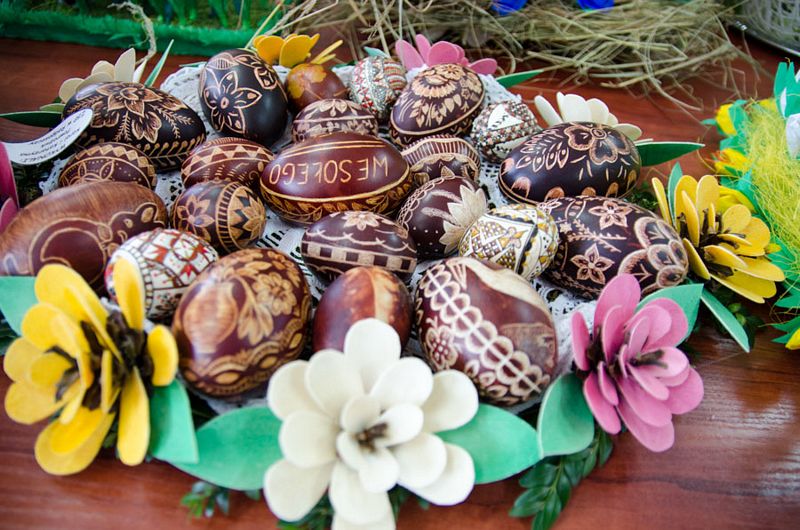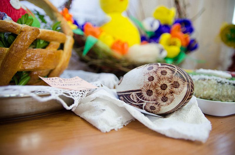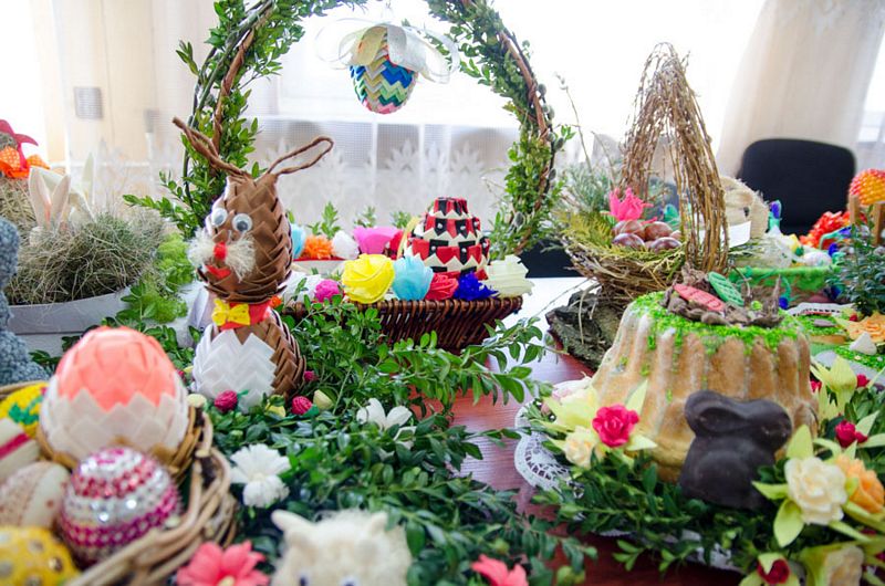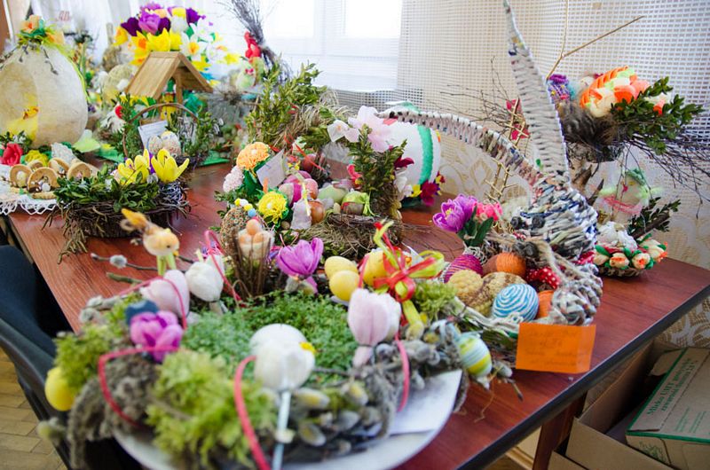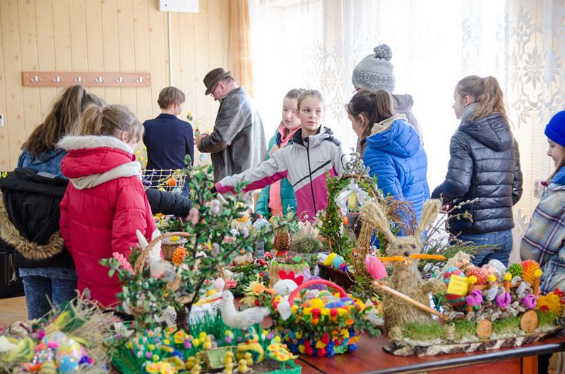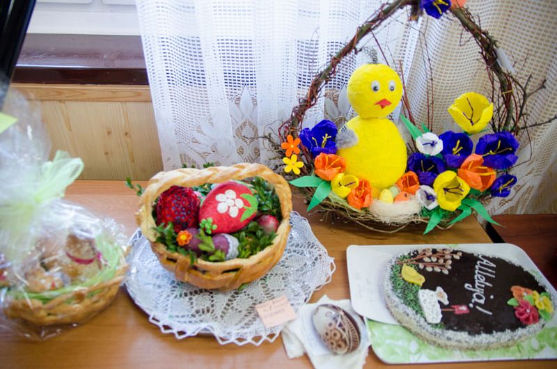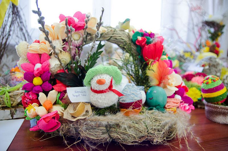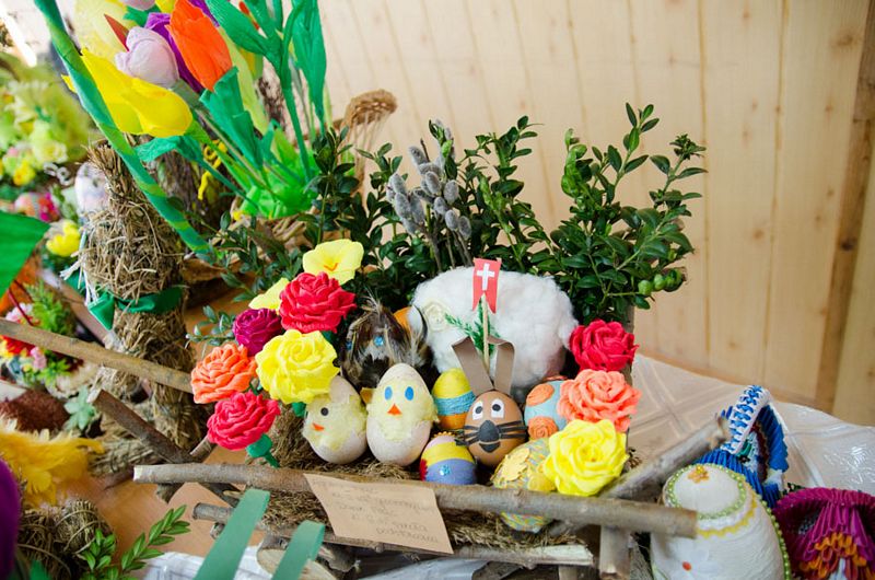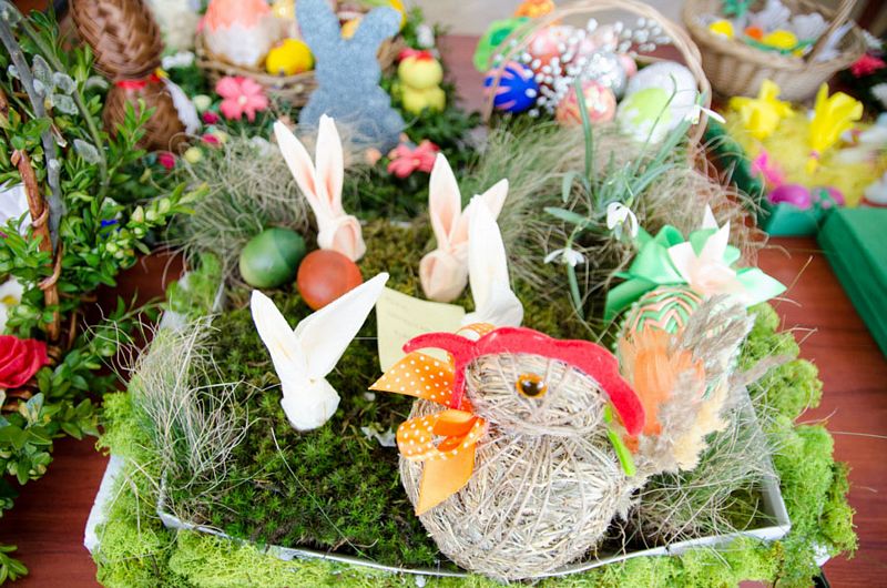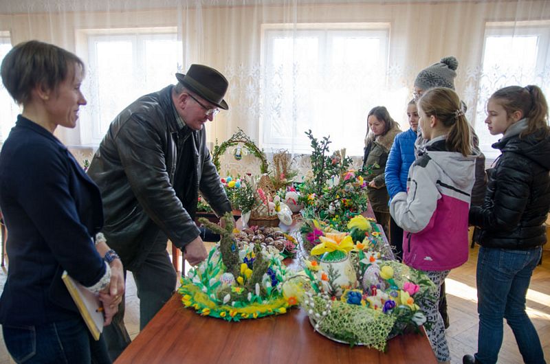 Uczniowie szkół i przedszkoli z Radgoszczy, Luszowic, Łęgu, Małca i Zarzecza Dużego przygotowali: pisanki zdobione techniką tradycyjną, wypieki, stroiki, gaiki, kompozycje kwiatowe, wyroby szydełkowe.