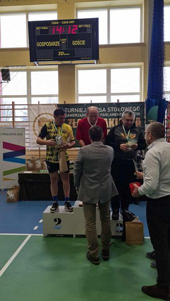Następnie słowa podziękowań skierował do Dyrekcji szkoły – Jarosława Bartonia i Danuty Zych za udostępnienie obiektu i nieocenioną pomoc w organizacji tego wydarzenia oraz do Zarządu Województwa Małopolskiego za udzielone dofinansowanie. Podziękowania popłynęły też do Prezesa Klubu Sportowego w Oleśnie Marka Tatarczucha i Wiceprezesa Adama Kierońskiego oraz trenera Klubu Tadeusza Łabędzia za profesjonalne przygotowanie sali i zabezpieczenie sprzętu niezbędnego do przeprowadzenia rozgrywek na najwyższym poziomie.
