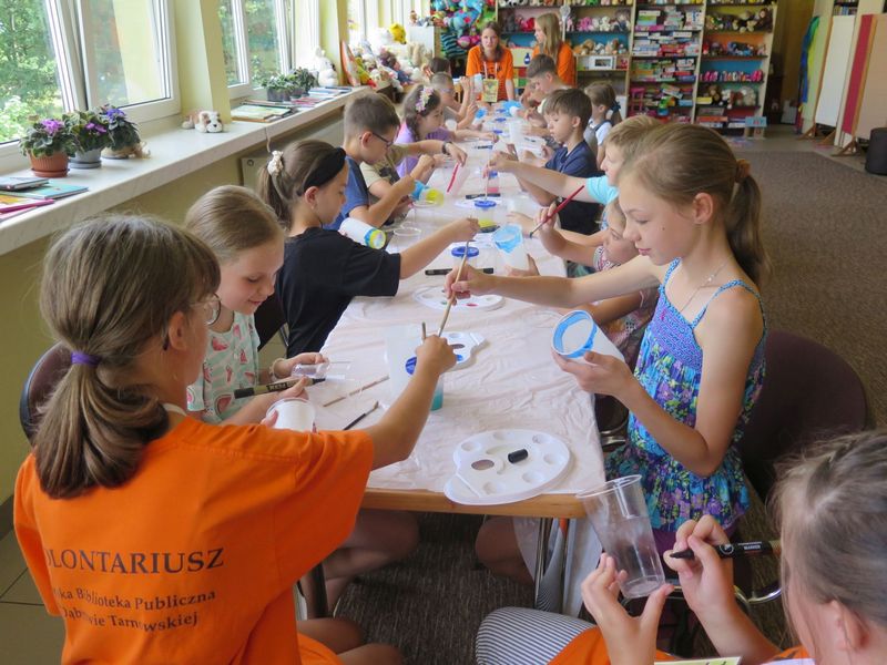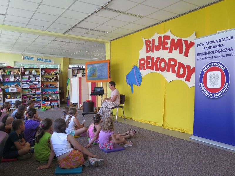 W Oddziale dla Dzieci Miejskiej Biblioteki Publicznej w Dąbrowie Tarnowskiej zrealizowano coroczną akcję „Wakacje w Bibliotece”, czyli 8 bezpłatnych spotkań dla zgłoszonych dzieci w wieku 7-14 lat, podczas których ustanawiano z dziećmi kilkadziesiąt rekordów dąbrowskiej Książnicy.