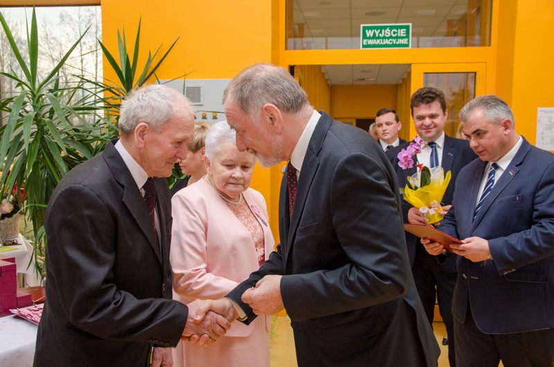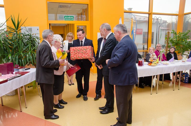 Jubilaci otrzymali również życzenia od wójta gminy, kierownik Urzędu Stanu Cywilnego oraz zaproszonych gości, wśród których byli m.in. wicestarosta dąbrowski Marek Kopia, sekretarz gminy Radgoszcz Wiesław Żurawski czy Barbara Rzeźnikiewicz.