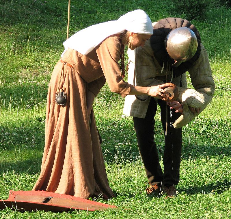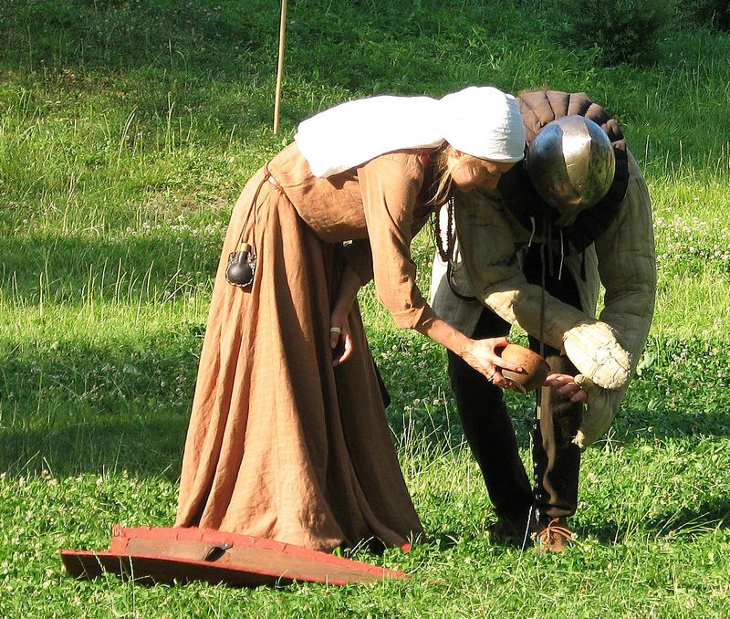 Zgromadzeni dowiedzieli się m.in. jakiego typu hełmy dominowały w wiekach średnich wśród słowiańskich wojów (z jakich przyczyn), kiedy pojawiły się turnieje rycerskie, jakie elementy składały się na etos rycerza (dlaczego wojowie nosili długie włosy), kiedy powstały i jak działały hakownice, czy naszą dynastię współtworzyli Wikingowie i co robili w słowiańskich szeregach, dlaczego kobiety nosiły ze sobą przybory do szycia, a nawet… jak wyglądała bielizna damska i czy damy dworu miały podwiązki (i jak wyglądały).