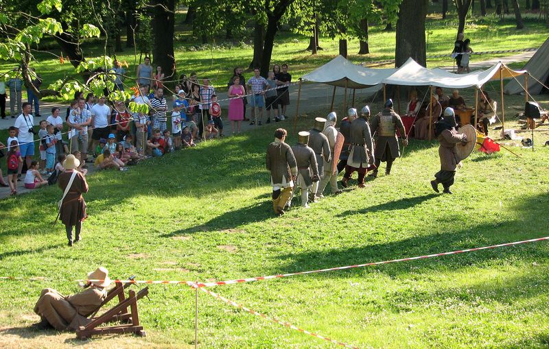 Rycerz z tarnowskiego bractwa i nauczyciel historii w dąbrowskiej „Dwójce” zadbał o porywającą oprawę merytoryczną imprezy. Opowiadał o historii uzbrojenia słowiańskich wojów; średniowiecznych walkach, ubiorze dam dworu oraz kunsztownych ozdobach (i jak to wyglądało zwłaszcza w warunkach obozowych). Uczestnicy imprezy mogli zobaczyć to wszystko na żywo.