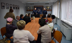 Bezpieczeństwo osób starszych od kilku lat jest priorytetem wielu instytucji oraz organizacji pozarządowych, które podejmują szereg działań mających na celu podniesienie stanu bezpieczeństwa. Jednym z takich obszarów, ważnym i szczególnie bliskim Policji, jest bezpieczeństwo seniorów w ruchu drogowym. Podczas spotkania st.asp. Krystian Białas z Referatu Ruchu Drogowego tutejszej jednostki Policji wpajał zebranym zasady bezpiecznego poruszania się po drogach, a także uświadamiał jak ważną rolę spełniają odblaski i kamizelki odblaskowe, które powinni nosić rowerzyści oraz piesi. Policjant apelował o ostrożność i uwagę, mówił o bezpiecznych zachowaniach, ale też o tragicznych konsekwencjach wypadków drogowych z udziałem pieszych, czy rowerzystów. Goście mieli również okazję zobaczyć mini galerię „Dąbrowa w starej fotografii” eksponowaną na pierwszym piętrze Komendy Powiatowej Policji.