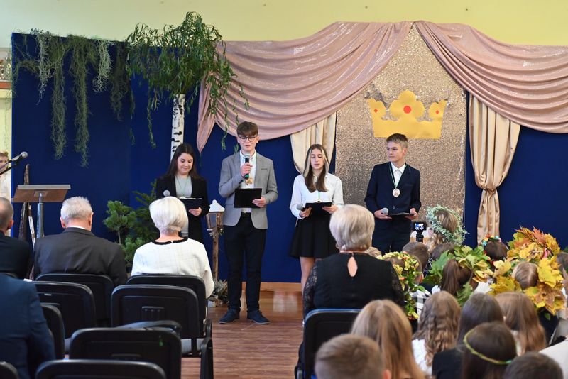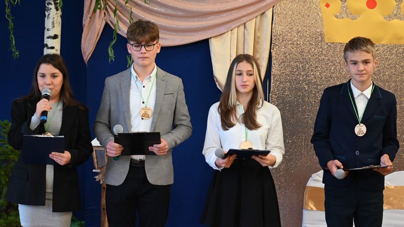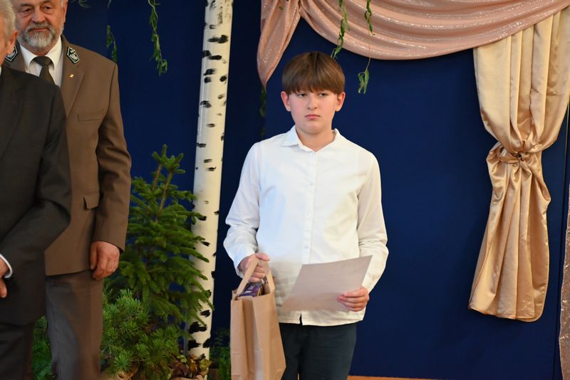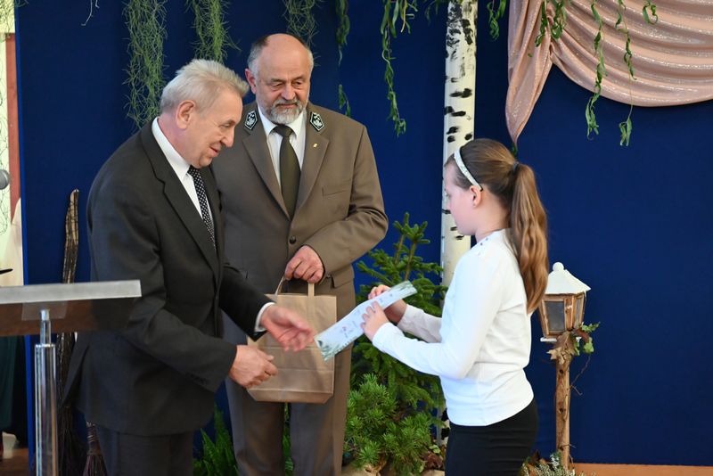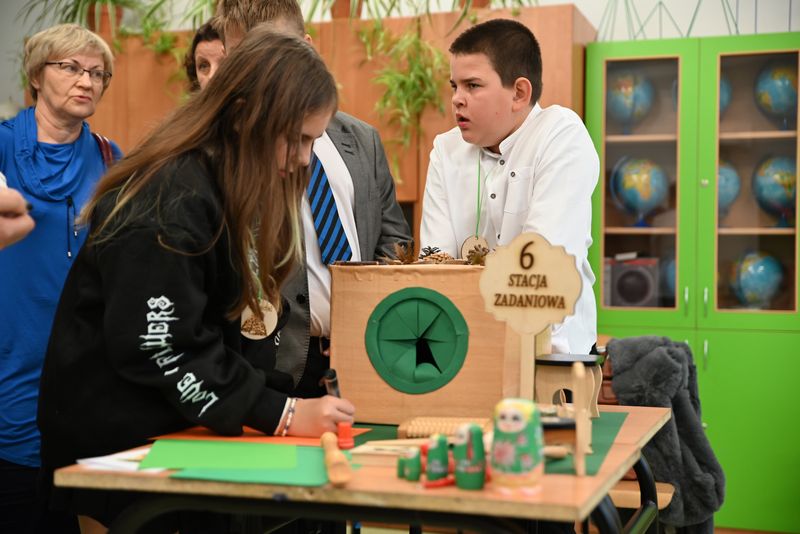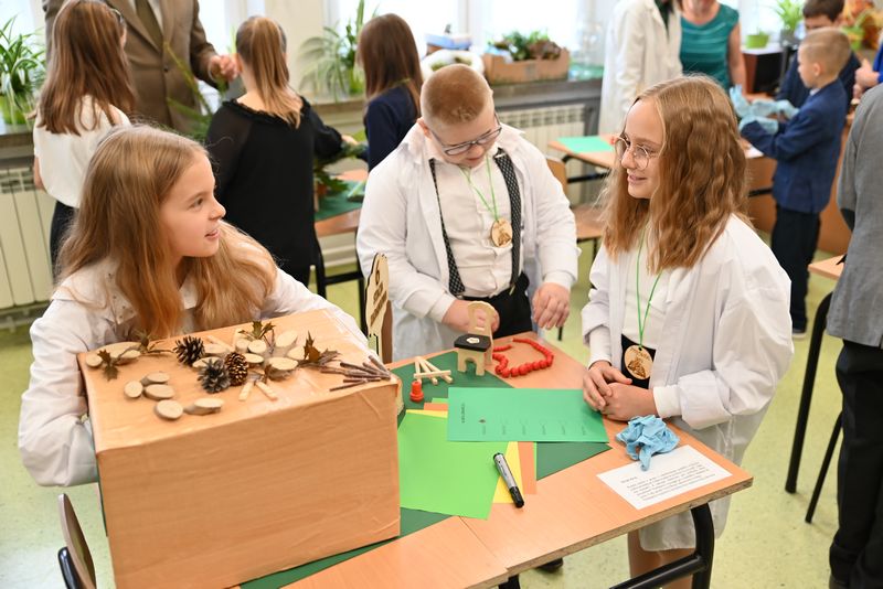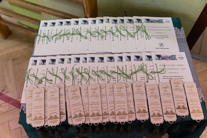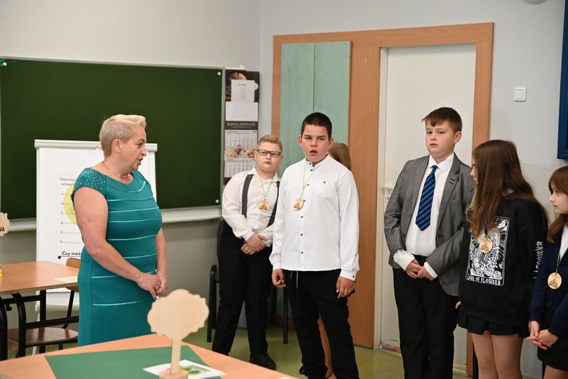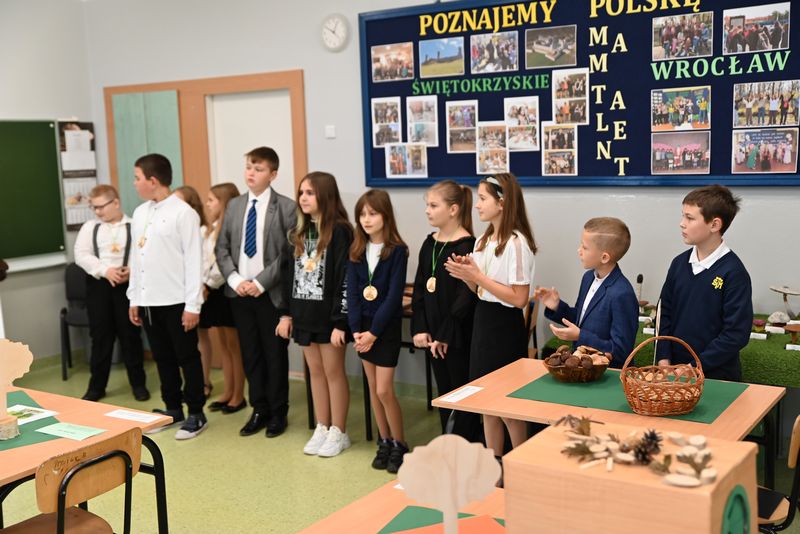 Przygotowano również wystawę zdjęć z zajęć w leśnej klasie, na której widać ogromne zaangażowanie i radość dzieci. Opracowano scenariusze zajęć z zakresu edukacji przyrodniczo-leśnej, na podstawie których przeprowadzone zostały lekcje. Został także rozstrzygnięty konkurs wiedzy o lesie, w którym brali udział wszyscy uczniowie naszej szkoły. Spisali się świetnie i otrzymali medale przyjaciół lasu, a zwycięzcom nagrody i dyplomy wręczyli zastępca burmistrza Stanisław Ryczek i nadleśniczy Krzysztof Majka.