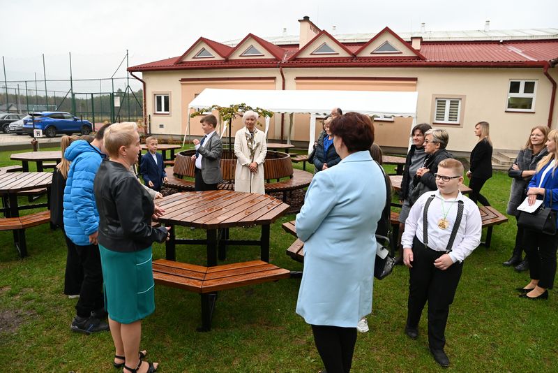 Dyrektor Elżbieta Kaczocha w imieniu całej społeczności szkolnej wyraziła swoją wdzięczność za to piękne dzieło, jakim jest „Klasa z leśną duszą”. To spełnienie marzeń dzieci, żeby spędzać czas na zewnątrz w otoczeniu przyrody, że mogą uczyć się na dziedzińcu szkolnym.