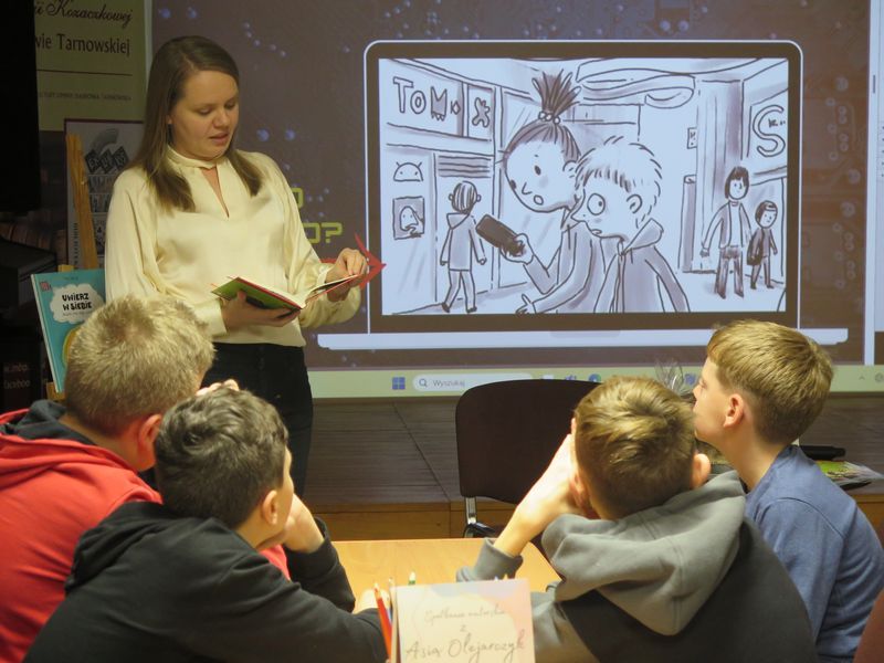 Książki tej pisarki są często czytane podczas spotkań z dziećmi w Krainie Bajek w MBP, tym bardziej więc cieszy jej wizyta. Podczas spotkania autorskiego dzieci posłuchały opowiadań pani Asi i na ich podstawie mogły podjąć wraz z nią temat wiary w siebie oraz poznawania swoich mocnych cech. Warsztaty bardzo zaciekawiły uczniów i dały impuls, aby nie wątpić w swoje możliwości i spełniać marzenia. Biblioteka zachęca do wypożyczenia książek Asi Olejarczyk ze zbiorów Oddziału dla Dzieci MBP, które zostały zaprezentowane podczas spotkania i zakupione w ramach Narodowego Programu Rozwoju Czytelnictwa 2.0. na lata 2021-2025 Priorytet 1 Poprawa oferty bibliotek publicznych Kierunek interwencji 1.1. Zakup i zdalny dostęp do nowości wydawniczych. Spotkanie zostało dofinansowane ze środków Rady Osiedla nr 2 w Dąbrowie Tarnowskiej, której przewodniczącym jest Marcin Kądzielawa.