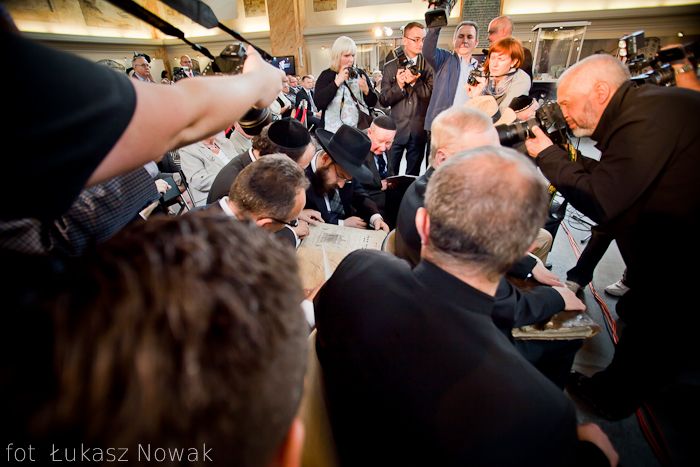 Pięknym gestem wykazał się Adam Bartosz – zastępca dyrektora Muzeum Okręgowego w Tarnowie, który przekazał dwie księgi uratowane przed laty przez jednego z mieszkańców Dąbrowy z niszczejącej synagogi. Po latach, zabytkowe już teraz księgi – tym bardziej cenne, że łączące dwie bliskie sobie kultury – powróciły na swoje dawne miejsce (pięknie odrestaurowane) i zasiliły eksponaty prezentowane już od jutra w synagodze.