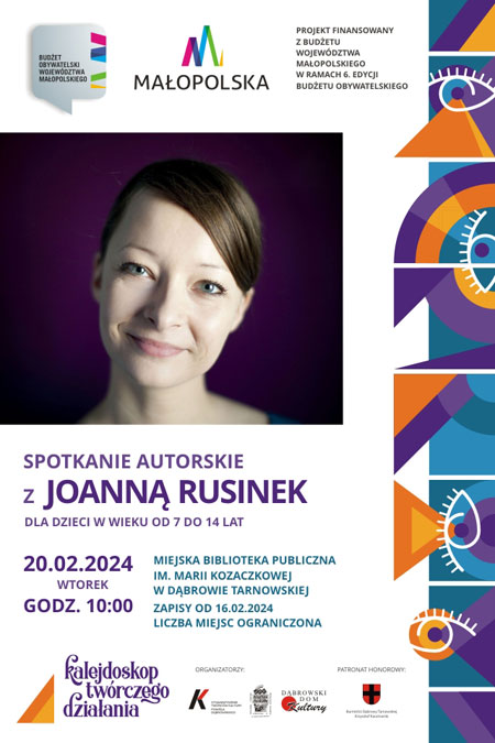 Miejska Biblioteka Publiczna w Dąbrowie Tarnowskiej serdecznie zaprasza dzieci w wieku od 7 do 14 lat na spotkanie autorskie z Joanną Rusinek – znaną ilustratorką książek dla dzieci.