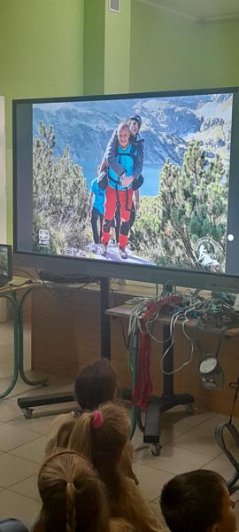 Podczas spotkania uczniowie zobaczyli zdjęcia i filmy z wypraw, w których udział biorą podopieczni fundacji, nazywani z czułością „Skarbami”. Była też okazja, by z bliska obejrzeć specjalistyczny sprzęt używany podczas tych niezwykłych górskich wypraw.