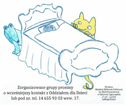 Chętne grupy prosimy o wcześniejszy kontakt z Oddziałem dla Dzieci lub pod nr. tel. 14 655 93 03 wew. 17.