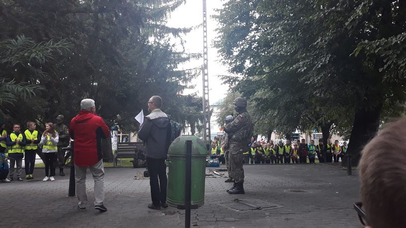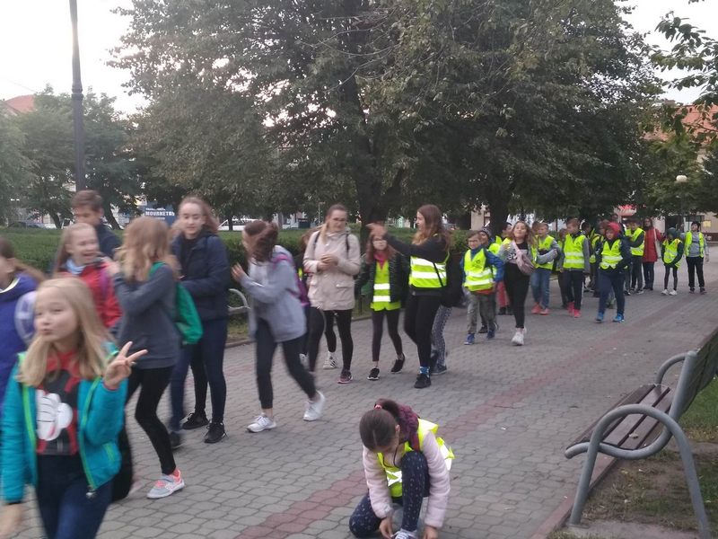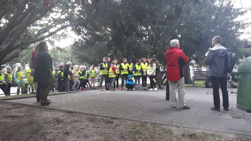 O siedemnastej ponad stu pięćdziesięciu uczniów ze Szkoły Podstawowej nr 2 razem z opiekunami stawiło się w trzech kolumnach na zielonych miejskich plantach przy historycznych pompach na wodę.