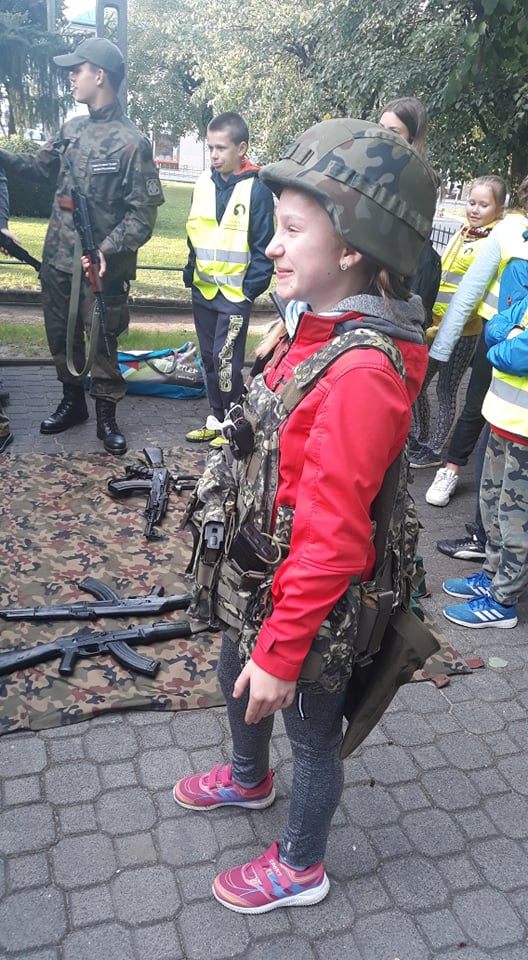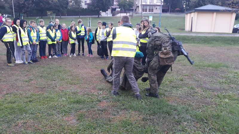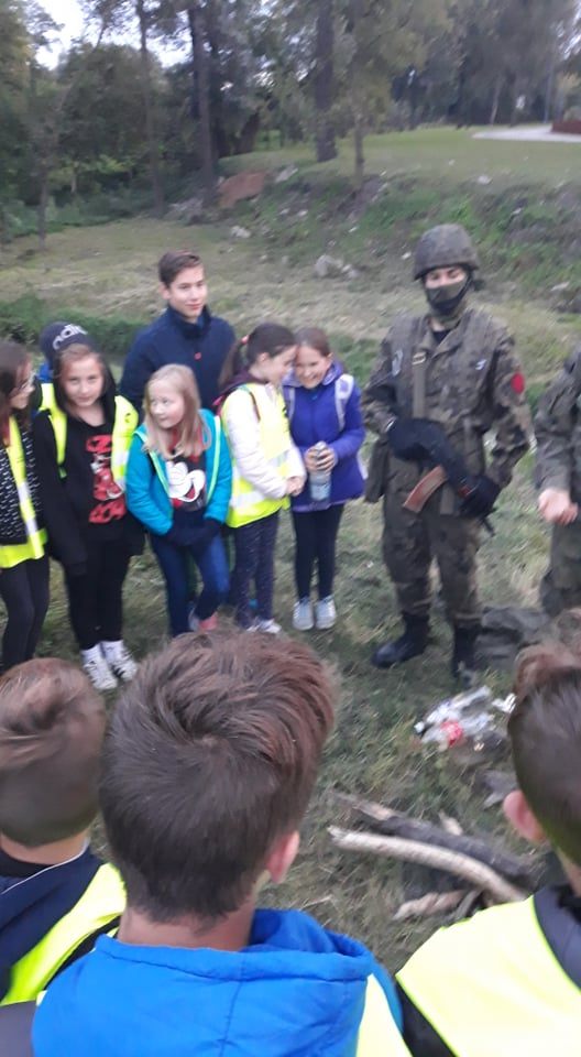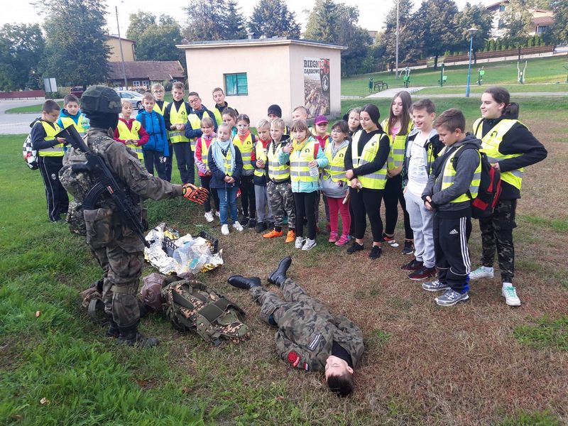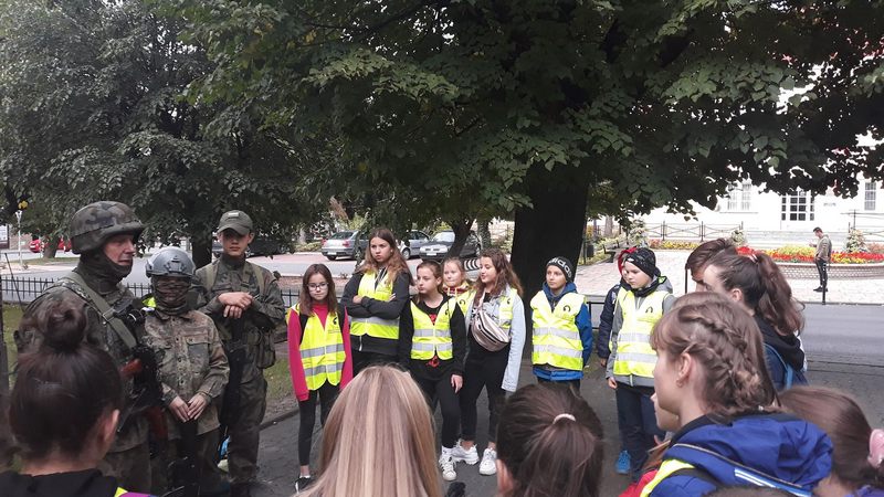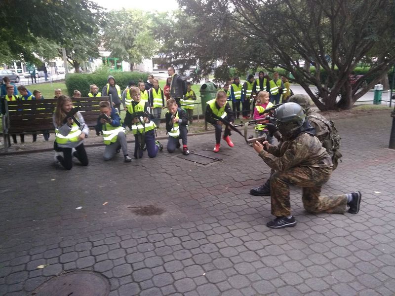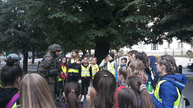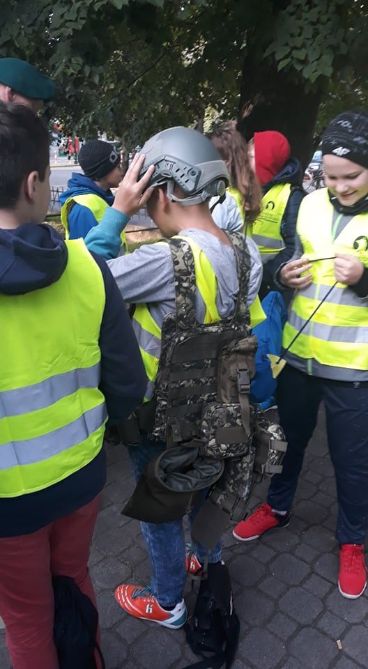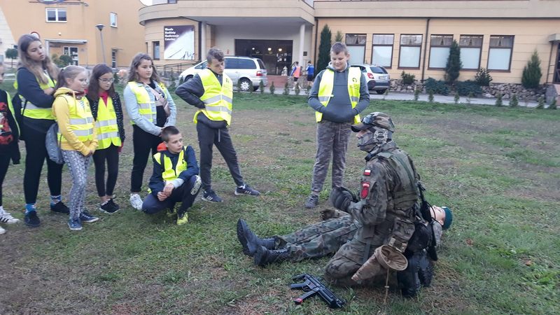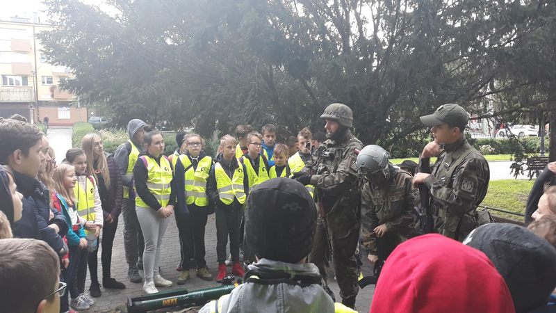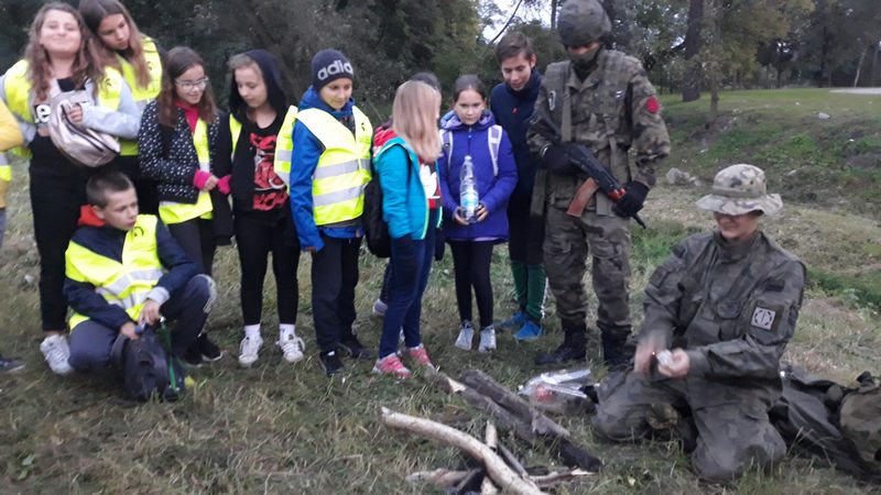 Na lokacji w centrum miasta odbyła się gawęda nt nowoczesnego uzbrojenia wojska polskiego, mundurów i wojny. Uczniowie mogli się przekonać, jak ciężkie jest oporządzenie współczesnego żołnierza, jak wyglądają karabiny i inne rodzaje broni, jaką pełnią funkcję i dlaczego musi istnieć armia. Nie da się przecenić też wiedzy dotyczącej jednej ze współczesnych postaw patriotyzmu związanej z przynależnością do takich organizacji jak Związek Strzelecki. Dzieci mogły się przekonać, że jeśli jest się już strzelcem, to przede wszystkim jest to obowiązek, wiele wyrzeczeń i ciągła praca nad samodoskonaleniem. Często trzeba rezygnować z własnych przyziemnych przyjemności i uczyć się współdziałania w ramach oddziału, który staje się nieraz drugim domem dla strzelca. Jest to nieodzowne, ponieważ wspólne zgranie, wyćwiczone umiejętności i opanowanie ogromu wiedzy decydują o sukcesie lub porażce w przyszłości podczas wykonywania poszczególnych zadań niekoniecznie związanych tylko z walką. Nie bez znaczenia była ostateczna konkluzja: wojna jest absolutnym i bezsprzecznym złem, którego ludzkość powinna się za wszelką cenę wystrzegać. Jednakże my Polacy, pomni na wiele lat niewoli i ucisku w przeszłości, powinniśmy pielęgnować tradycje i wartości, dzięki którym sto lat temu udało się odzyskać niepodległość i utrzymać ją potem mimo wielu niesprzyjających warunków. Poza tym przynależność do Związku Strzeleckiego to piękne świadectwo chęci zrobienia czegoś nie tylko dla siebie, ponieważ np. w każde święto narodowe trzeba reprezentować w mundurze swój oddział i wartości patriotyczne.