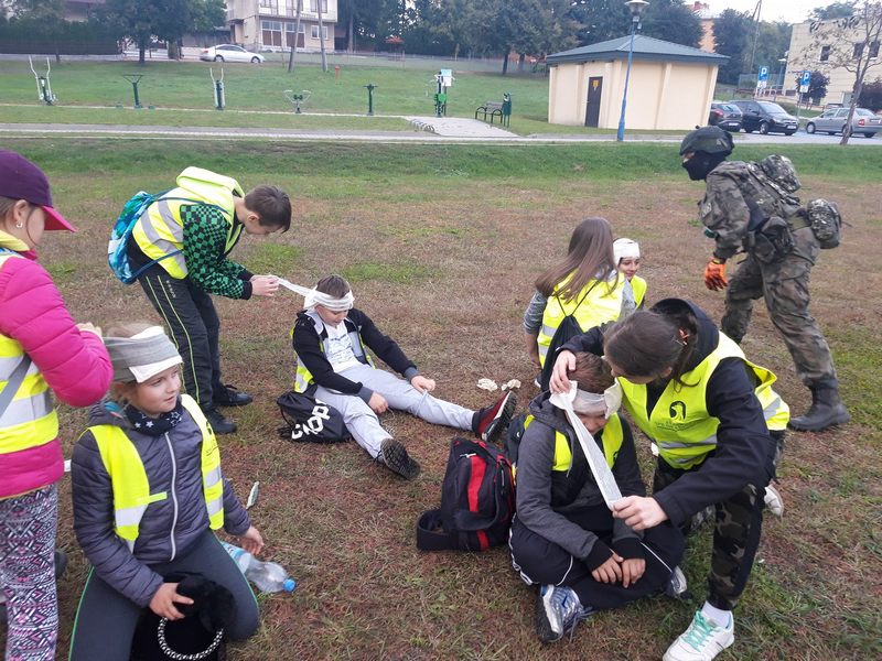 Tam czekali już na pierwszym zaplanowanym na rozpoczęcie stanowisku, które stanowiło coś w rodzaju sztabu dowodzenia, strzelcy pod dowództwem p. Mariusza Grzebieniowskiego. Wszystkimi oddziałami złożonymi z uczniów dowodził Dyrektor Szkoły, p. Anna Fido. Kiedy wszyscy stali już w równym ordynku, Burmistrz Miasta p. Krzysztof Kaczmarski oficjalnie zarządził rozpoczęcie zabawy i każdy rzut podzielony na drużyny wg natowskich kryptonimów udał się na jedno z miejsc przeznaczenia, czyli lokacji, gdzie uczniowie mogli poznawać ciekawostki związane z działalnością strzelecką lub zdobywać wiedzę poprzez wykonywanie szeregu zadań. Grupy w sposób zsynchronizowany odwiedzały tak wszystkie lokacje.