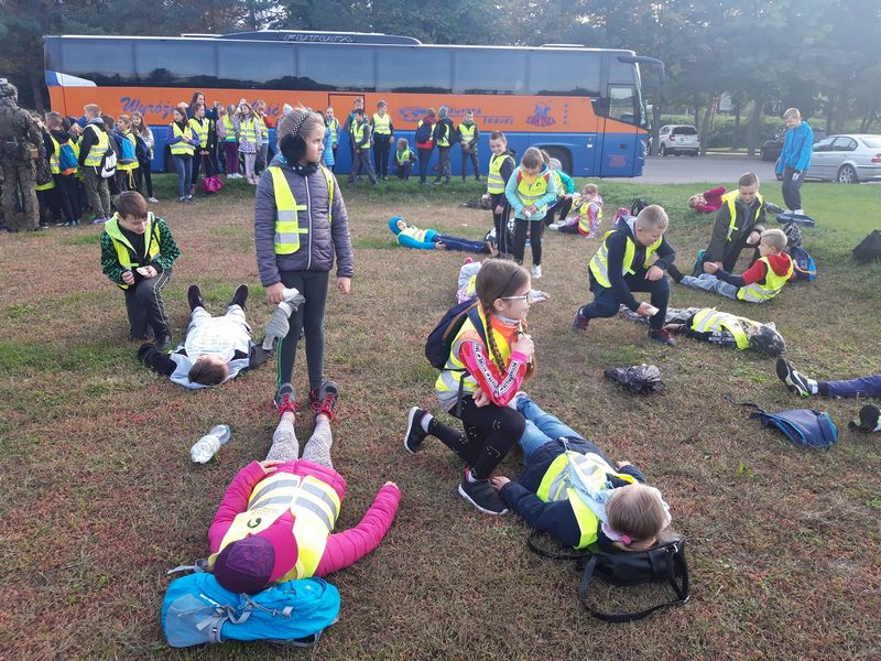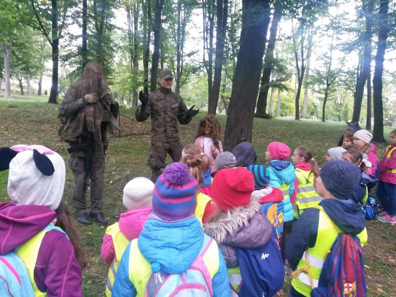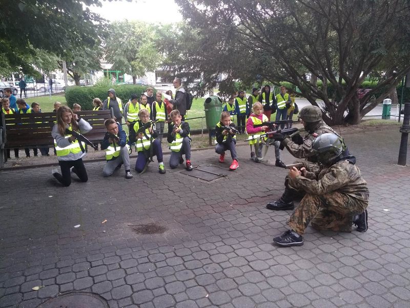 Przy pomniku w parku odbyły się ćwiczenia z musztry wojskowej i dyscypliny. Widać było, że dla niektórych dzieci był to swoisty szok, większość jednak z cieszyła się z tego, że mogą poczuć się jak prawdziwi żołnierze.