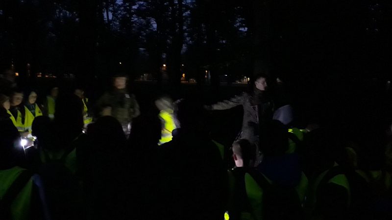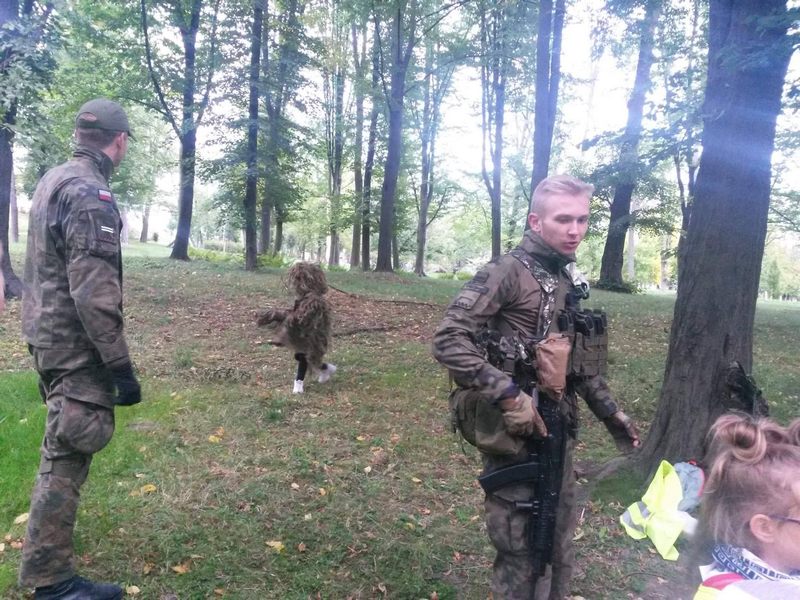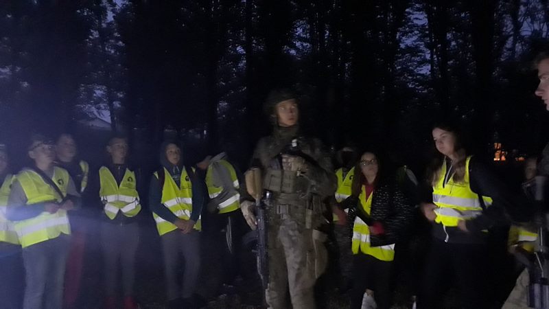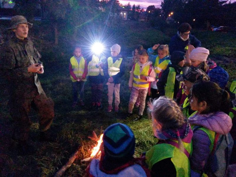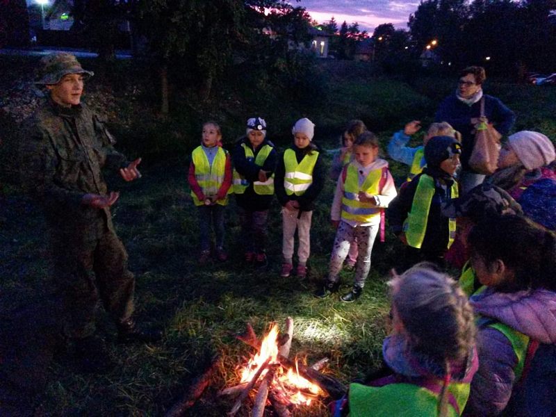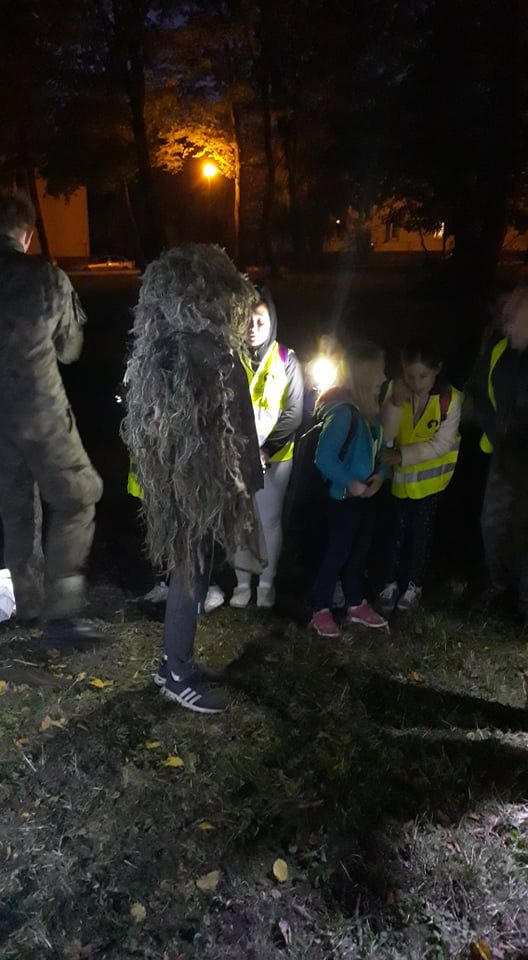 W parku miejskim wiele grup już po zmroku przekonało się, że umiejętności maskowania są bardzo ważnym elementem współczesnej wojskowości. Poznaliśmy podstawy wiedzy z tego zakresu i mogliśmy się przekonać, że dobry żołnierz może się tak zamaskować, że można dosłownie koło niego przejść i go nie zauważyć! Byliśmy świadkami zabawnych sytuacji, kiedy dzieci wpadały na ukrytych strzelców i niemal krzyczały ze zdziwienia.