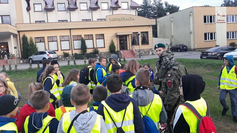 Przy okazji pragniemy wyrazić wdzięczność mieszkańcom Dąbrowy, zwłaszcza tym z bloków z ul. Zazamcze, którzy musieli przez kilka godzin jeszcze długo po zmroku znosić mimowolnie wydawane okrzyki bojowe naszych uczniów, kiedy pod okiem strzelców ćwiczyli działania osłonowe prowadzone wprost na osiedlu.