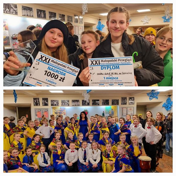 Chór Clave de sol ze Szczucina pod dyrekcją Ilony Mach wyśpiewał I miejsce na podium XXI Małopolskiego Przeglądu Pieśni Chóralnej Kolęd i Pastorałek w kategorii chóry dziecięco-młodzieżowe.