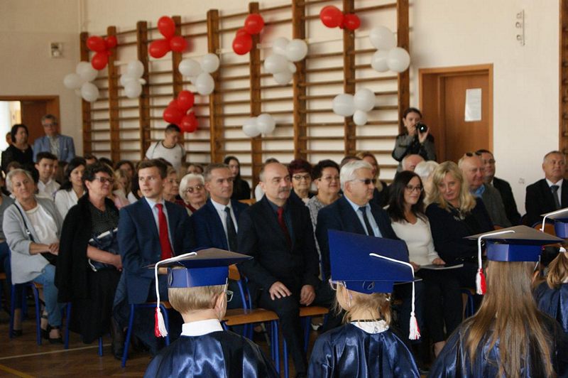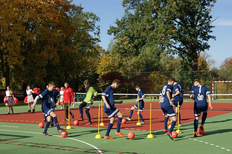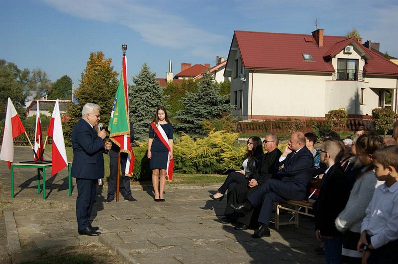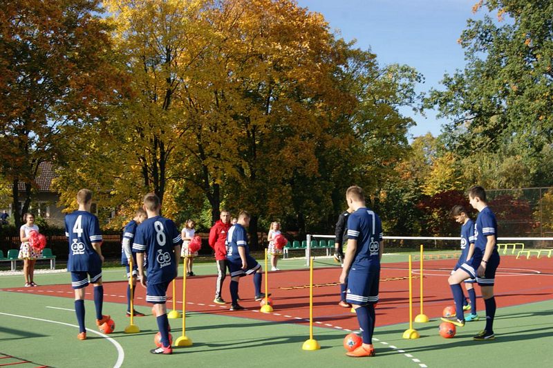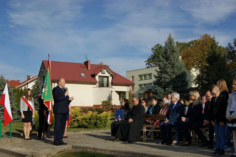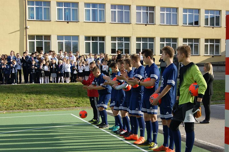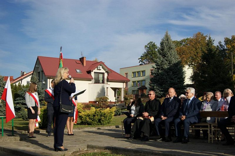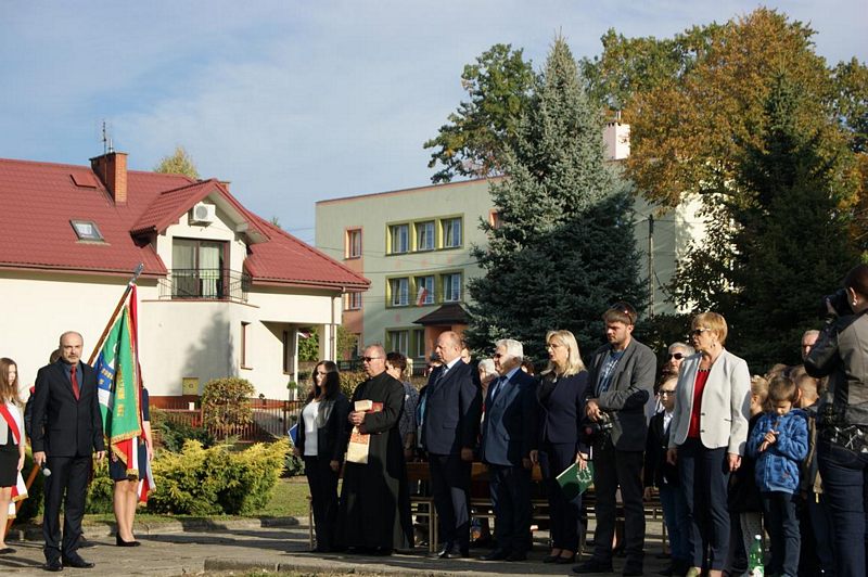 Na uroczystości Gości powitała dyrektor szkoły Iwona Wrzoskiewicz–Słonka. W swoim przemówieniu zwróciła uwagę m.in. na ważność sportu w kształtowaniu charakterów i postaw wśród młodych ludzi. Podobne kwestie w swoich wystąpieniach podnosili burmistrz Krzysztof Kaczmarski i wicemarszałek Stanisław Sorys. Następnym punktem było tradycyjne przecięcie wstęgi przez zaproszone osoby oraz poświęcenie boiska, czego dokonał ksiądz proboszcz Stanisław Cyran.