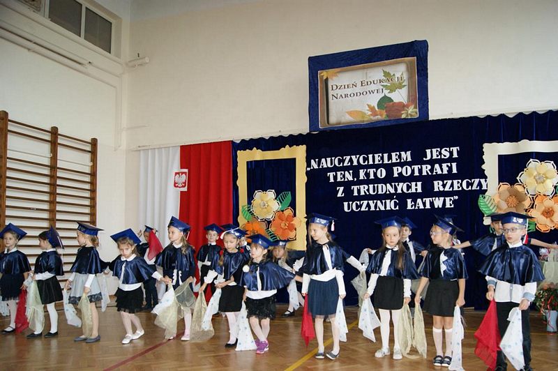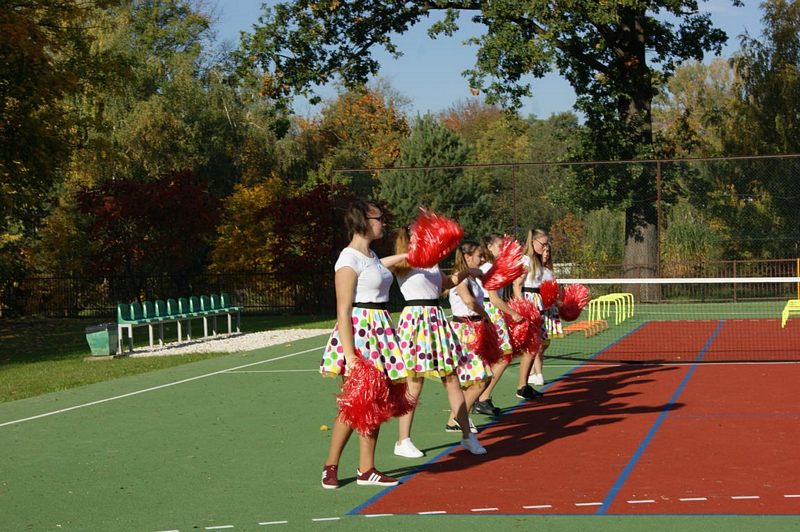 Na otwartym już obiekcie wszyscy zgromadzeni mogli podziwiać pokazy sportowe w wykonaniu uczniów naszej szkoły przygotowane przez nauczycieli wychowania fizycznego, a prowadzone przez pana Artura Pobiegło. Potem uroczystość przeniosła się do budynku szkoły, gdzie, tradycyjnie już świętowano Dzień Nauczyciela.