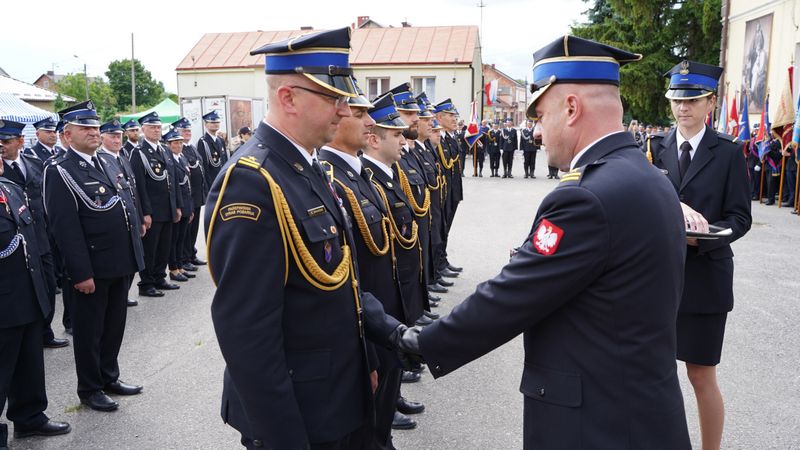 Podczas apelu wyróżniono i odznaczono najbardziej zasłużonych strażaków, doceniając ich poświęcenie i wkład w zapewnienie bezpieczeństwa mieszkańcom powiatu. Wyróżnienia wręczali przedstawiciele władz lokalnych oraz komendanci straży pożarnej.