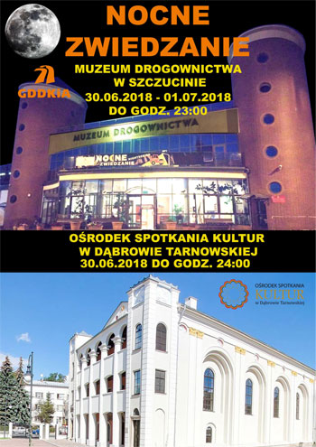 Muzeum Drogownictwa w Szczucinie i Ośrodek Spotkania Kultur w Dąbrowie Tarnowskiej zapraszają na wiele atrakcji na rozpoczęcie wakacji 2018. Szczucińska placówka GDDKiA będzie otwarta dla odwiedzających w 2 dni 30 czerwca i 1 lipca (sobota i niedziela) w godz. 15:00 – 23:00, dąbrowska natomiast w godz. 20:00-0:00 tylko w sobotę 30 czerwca.