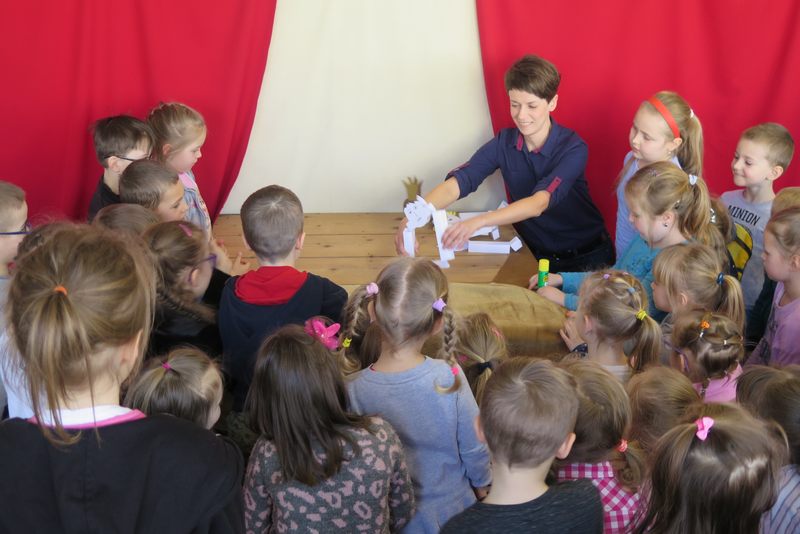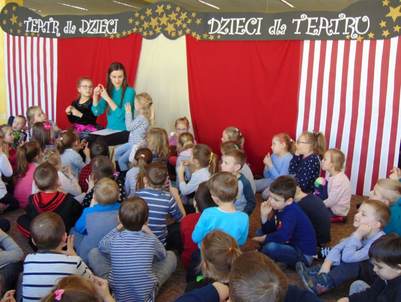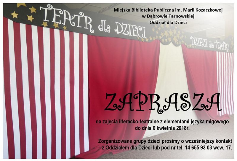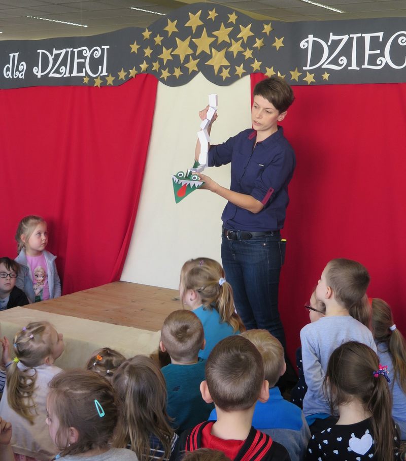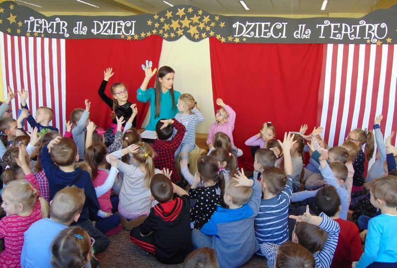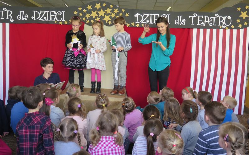 Oddział dla Dzieci w Miejskiej Bibliotece Publicznej im. Marii Kozaczkowej w Dąbrowie Tarnowskiej zachęca zorganizowane grupy dzieci w różnym wieku do „zabawy w teatr” z elementami języka migowego.