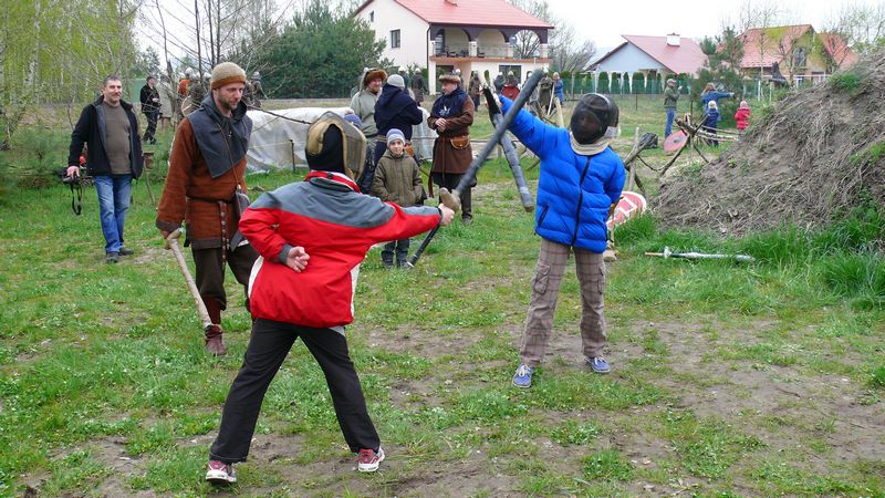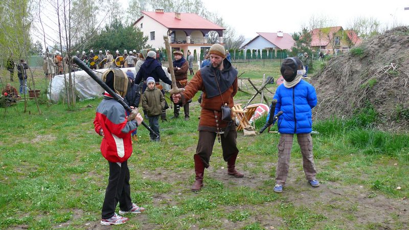 Oprócz zajęć, które podnosiły sprawność łuczników, wojów i rycerzy oraz koordynacje działań bojowych poszczególnych grup, korzystając z obecności instruktorów zorganizowaliśmy warsztaty walki mieczem dla dzieci i młodzieży. Po zaciekłych walkach milusińscy mogli skosztować epokowych potraw przygotowanych przez członkinie grup na ognisku w rekonstrukcjach zabytkowych naczyń metalowych i glinianych. Można też było tradycyjnie podpatrzeć jak toczy się życie obozu, w którym rzeczywiście jego uczestnicy mieszkali przez dwa dni w całkowicie średniowiecznych realiach.
