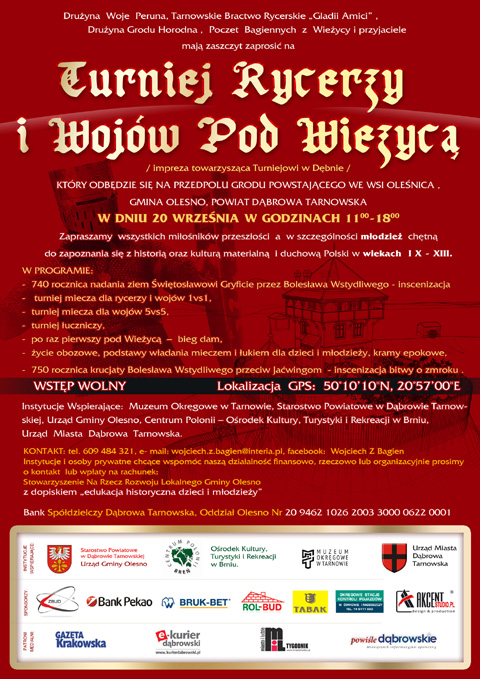 Podobnie jak w latach poprzednich impreza nasza organizowana pod patronatem Muzeum Okręgowego w Tarnowie poprzedza Turniej Rycerski na zamku w Dębnie, na który serdecznie zapraszamy w niedzielę.