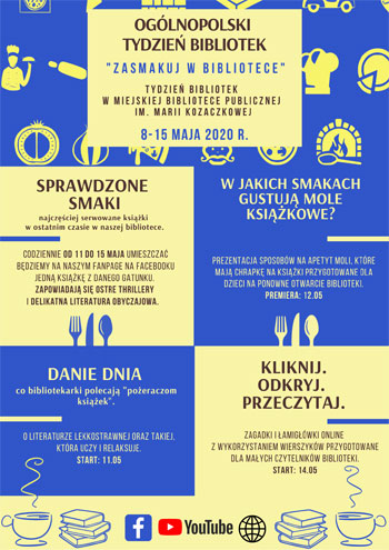 8 maja obchodziliśmy Dzień Bibliotekarza i rozpoczęliśmy obchody „Tygodnia Bibliotek” w Miejskiej Bibliotece Publicznej im. Marii Kozaczkowej w Dąbrowie Tarnowskiej, który w tym roku odbywa się pod hasłem „Zasmakuj w bibliotece”.
