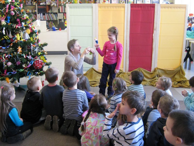 Było głośne czytanie opowieści pt. „Boże Narodzenie”, wspólne kolędowanie i składanie życzeń oraz przedstawienie kukiełkowe „Czerwony Kapturek”, którym także nie zabrakło bożonarodzeniowych akcentów.